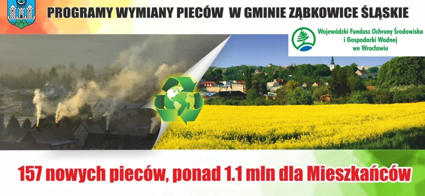 115 nieekologicznych pieców usunięto na terenie Gminy Ząbkowice Śląskie w 2018 roku dzięki realizowanemu programowi dotacji „Ograniczanie niskiej emisji na terenie Gminy Ząbkowice Śląskie” (w 2017 wymienionych zostało 41 pieców oraz 1 kotłownia lokalna zasilająca 12 mieszkań). Pozwoliło to na znaczną redukcję pyłu PM 10 w powietrzu o 1,9 Mg. Zadania związane z wymianą pieców zamknęły się w 2018 roku ogólną kwotą ponad 1,8 mln złotych w tym dofinansowanie przekazane mieszkańcom to blisko 900 tysięcy złotych (w 2017 roku kwota dotacji przekazana mieszkańcom to 335 000 zł). Ogółem zainstalowano 60 nowych kotłów gazowych, 4 piece elektryczne, 16 kotłów na biomasę i 21 kotłów na ekogroszek. Program wymiany pieców realizowany od 2017 roku pozwolił na wymianę 157 nieekologicznych pieców oraz jednej kotłowni lokalnej. Gmina Ząbkowice Śląskie walkę ze smogiem ma zamiar kontynuować także w 2019 roku. Oprócz dotacji w ramach programu „Ograniczania niskiej emisji na terenie Gminy Ząbkowice Śląskie” planowane są także do złożenia wnioski na wymianę pieców w ramach partnerskiego projektu Koalicja na Rzecz Poprawy Jakości Powietrza Gmin Obszaru Ziemi Dzierżoniowsko-Kłodzko-Ząbkowickiej (OSI ZKD), w którym właściciele domów jednorodzinnych będą mogli otrzymać dofinansowanie w wielkości do 85% kosztów wymiany pieca.