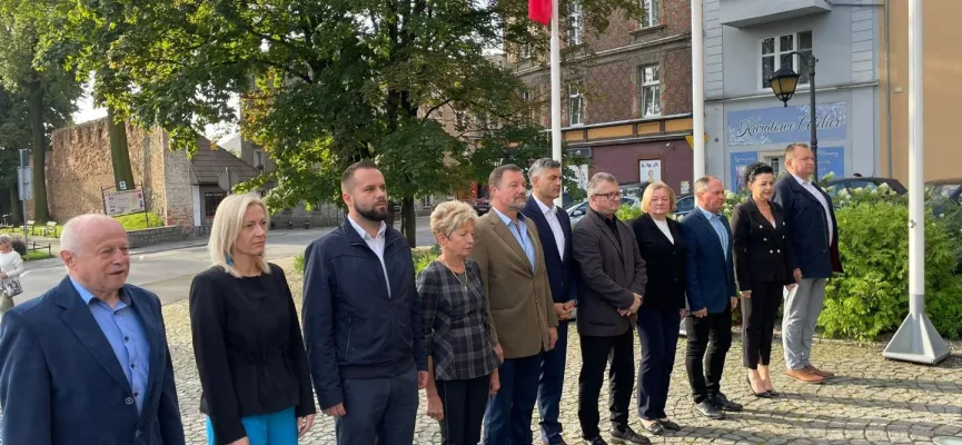 Pod pomnikiem Poległym za Ojczyznę burmistrz Marcin Orzeszek wraz z Przewodniczącym Rady Miejskiej Andrzejem Dominikiem i delegacją samorządu Gminy Ząbkowice Śląskie złożyli kwiaty, aby upamiętnić naszych rodaków, którzy walczyli na wszystkich frontach II Wojny Światowej.