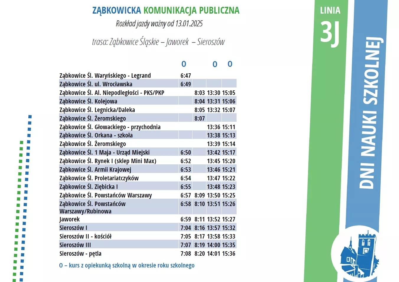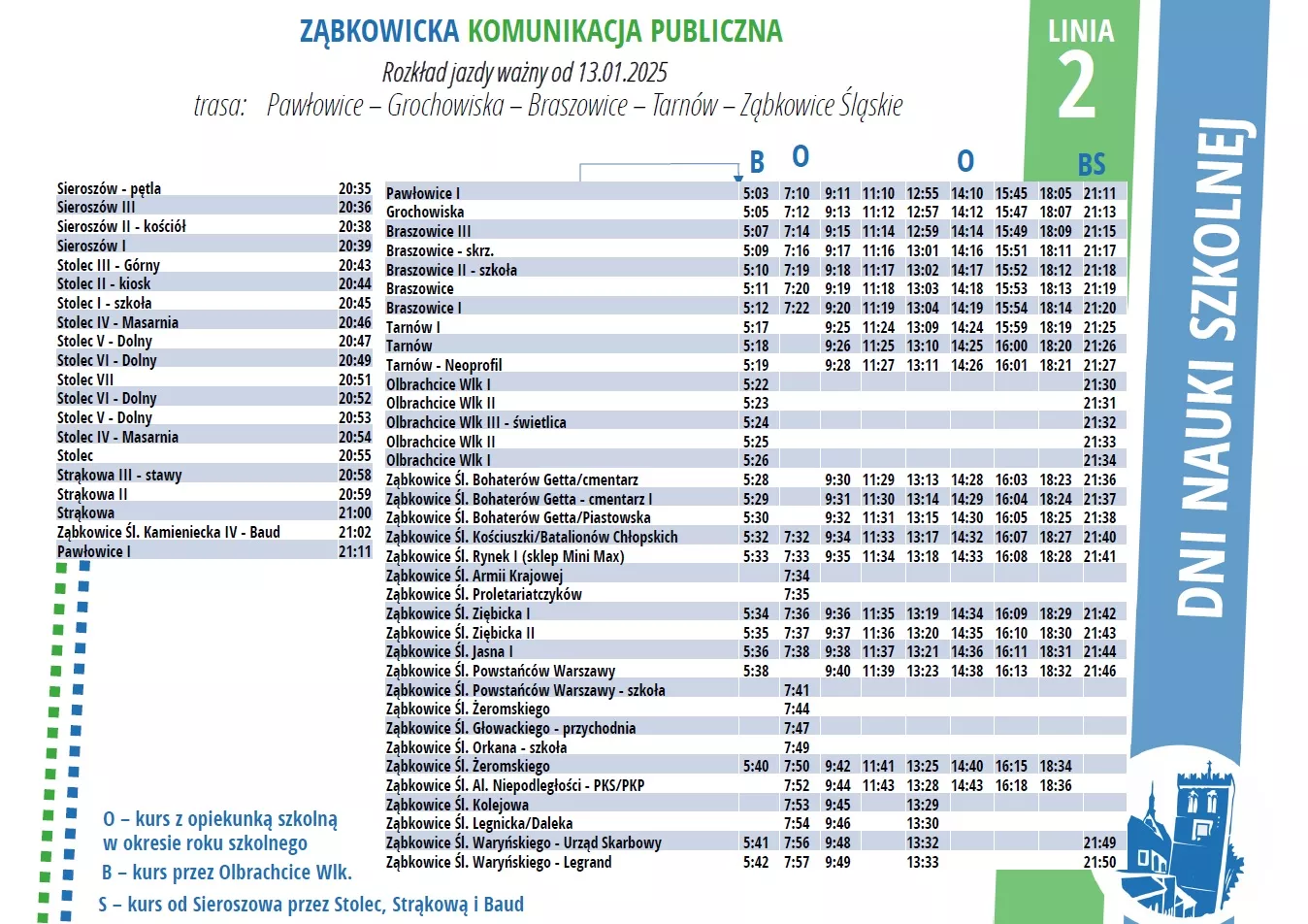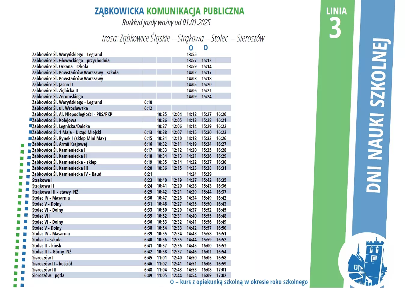 3 – zmiana słupka na kursie szkolnym w Stolcu (zatrzymywanie przed kościołem, nie szkołą), zmiana trasy kursów szkolnych rano;