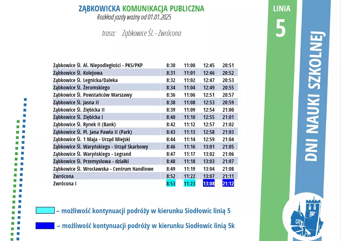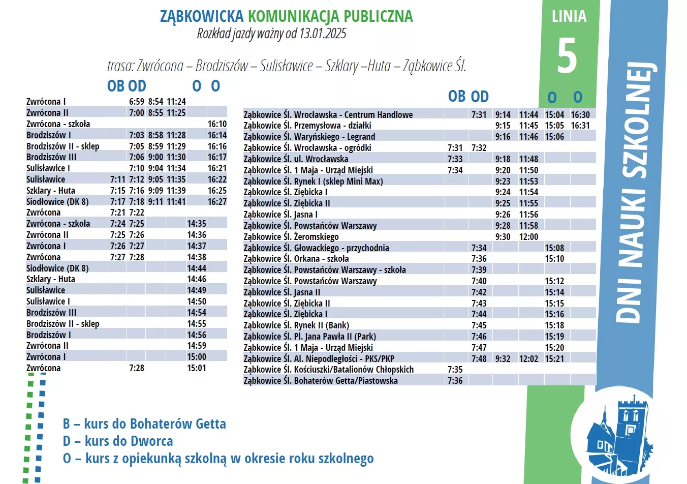 5 – zmiana trasy kursów szkolnych.