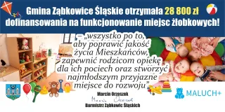 Gmina Ząbkowice Śląskie otrzymała 28 800 zł dofinansowania na funkcjonowanie miejsc żłobkowych! Dofinansowanie pochodzi z Resortowego Programu „MALUCH+” 2021 z modułu dotyczącego funkcjonowania miejsc żłobkowych.