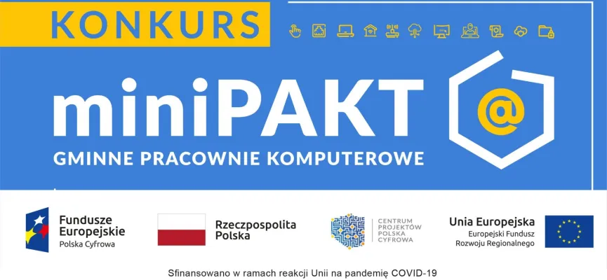 Konkurs miniPAKT - gminne pracownie komputerowe, wchodzi w skład projektu Cyfrowa Gmina (CG) i jest dedykowany gminom oraz miastom na prawach powiatu. Projekt jest finansowany z Funduszy Europejskich Program Operacyjny Polska Cyfrowa 2014-2020.