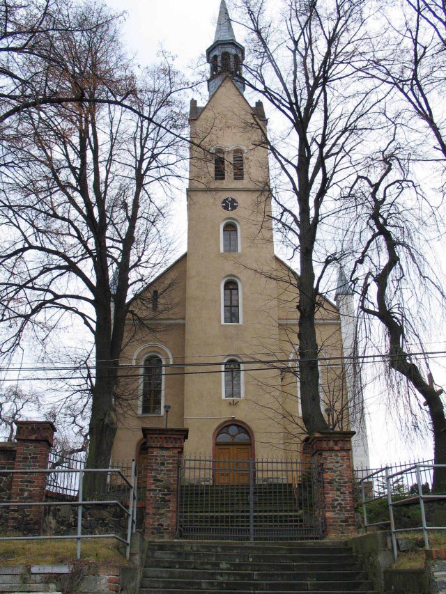 Kościół MB Królowej Polski z lat 1865-1868 na miejscu starszego, wzmiankowanego w 1335 r.