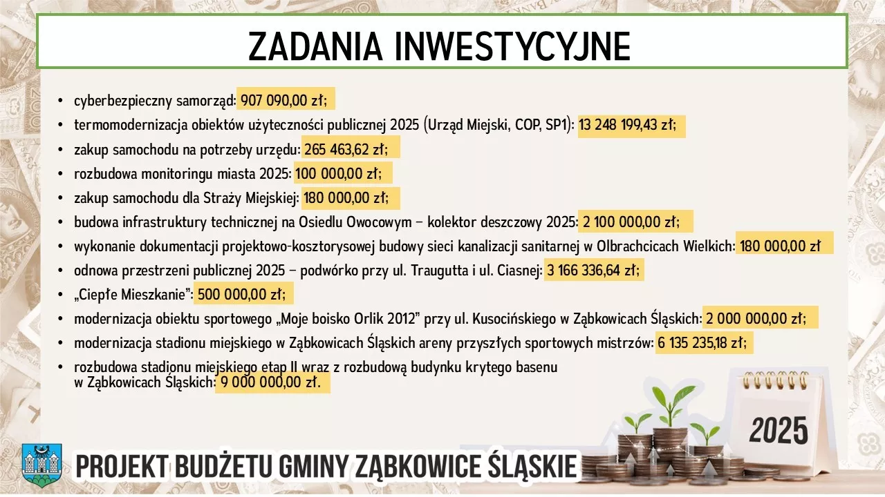 "Dziękuję wszystkim radnym za zaufanie i pozytywną opinię. Realizacja budżetu Gminy Ząbkowice Śląskie 2025 to lepsza jakość życia Mieszkańców, rozwój gminy, która staje się atrakcyjna dla inwestorów, szczęśliwe rodziny z kompleksowym zapleczem edukacyjnym dla dzieci, sport, kultura i rekreacja na najwyższym poziomie" - podsumował obrady sesji burmistrz Marcin Orzeszek.