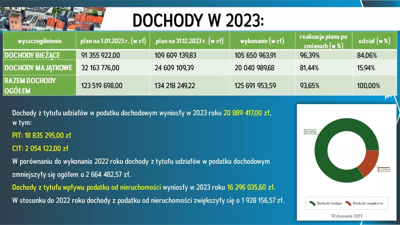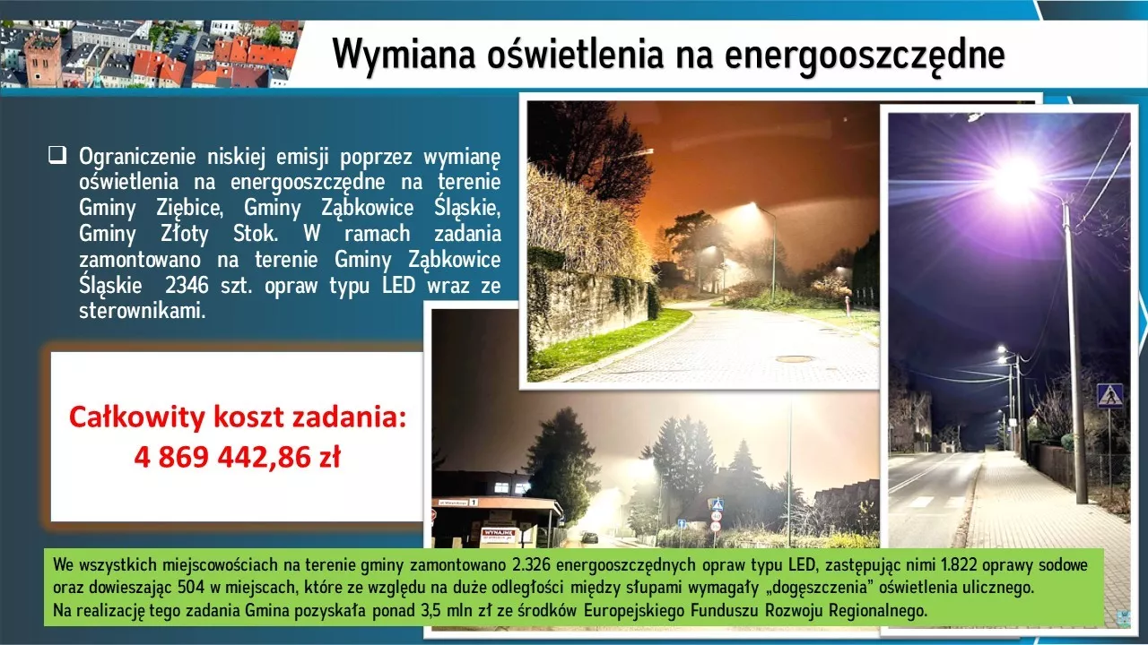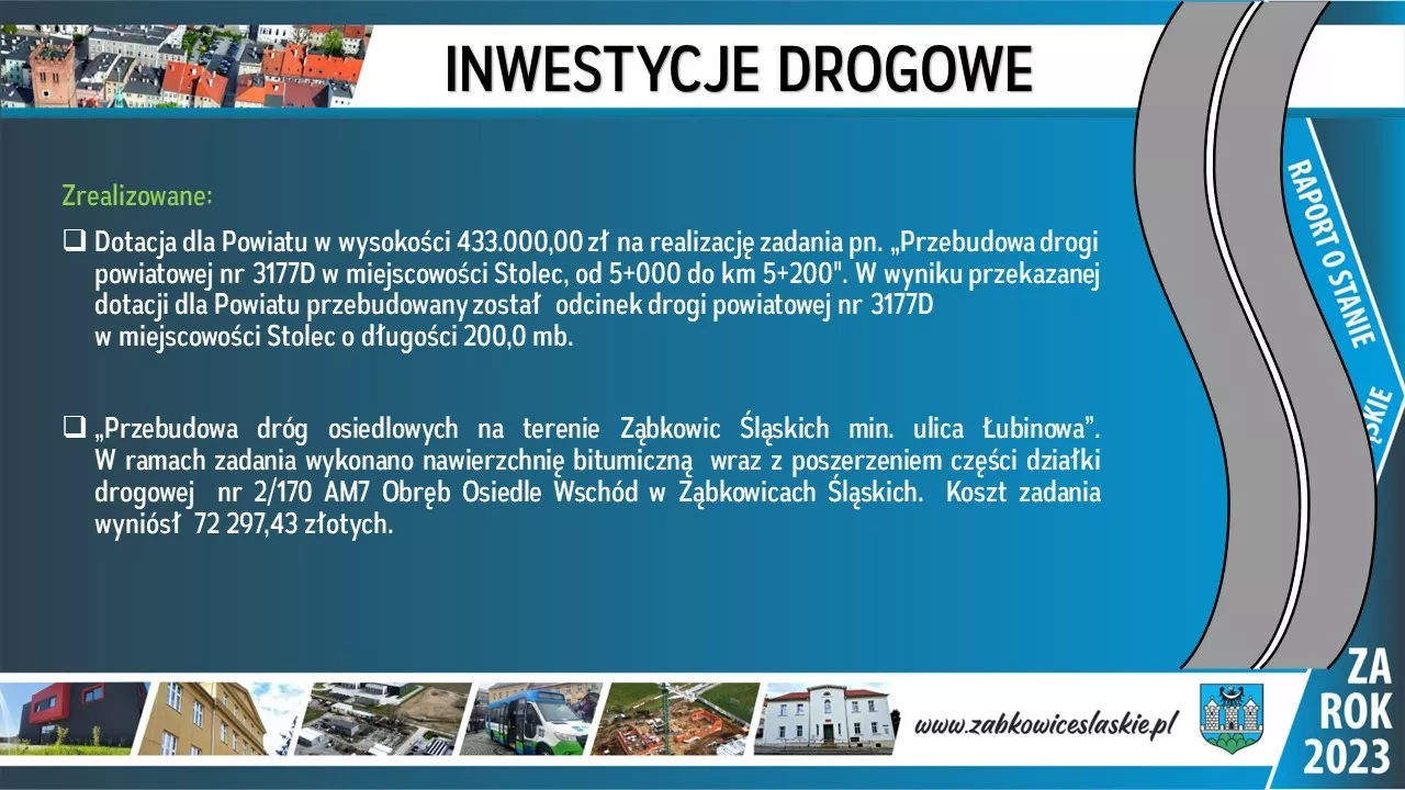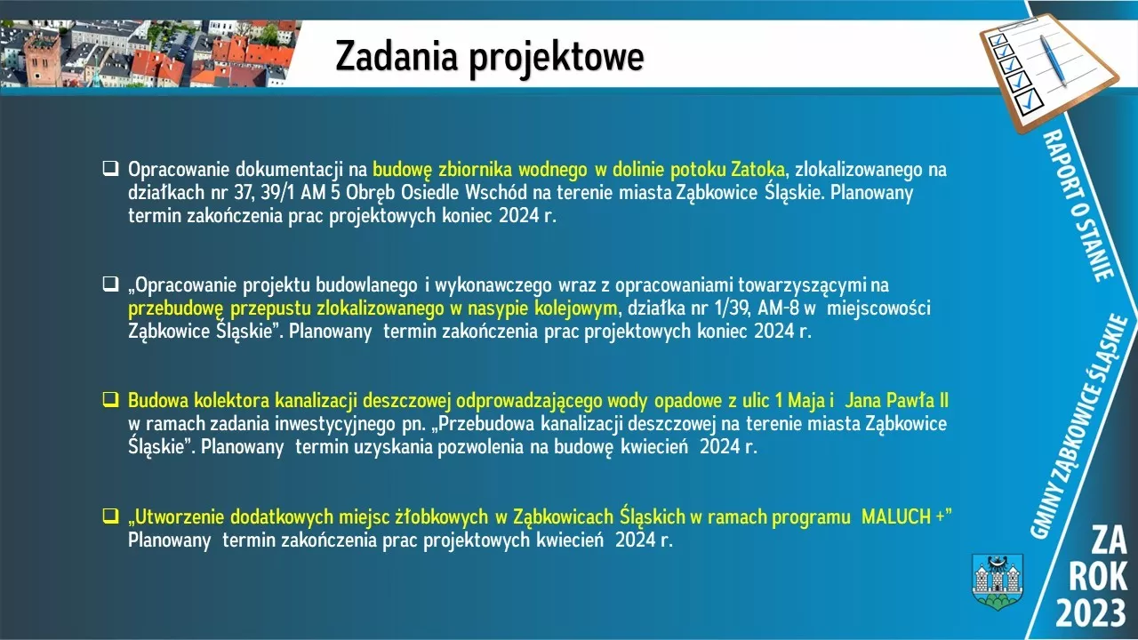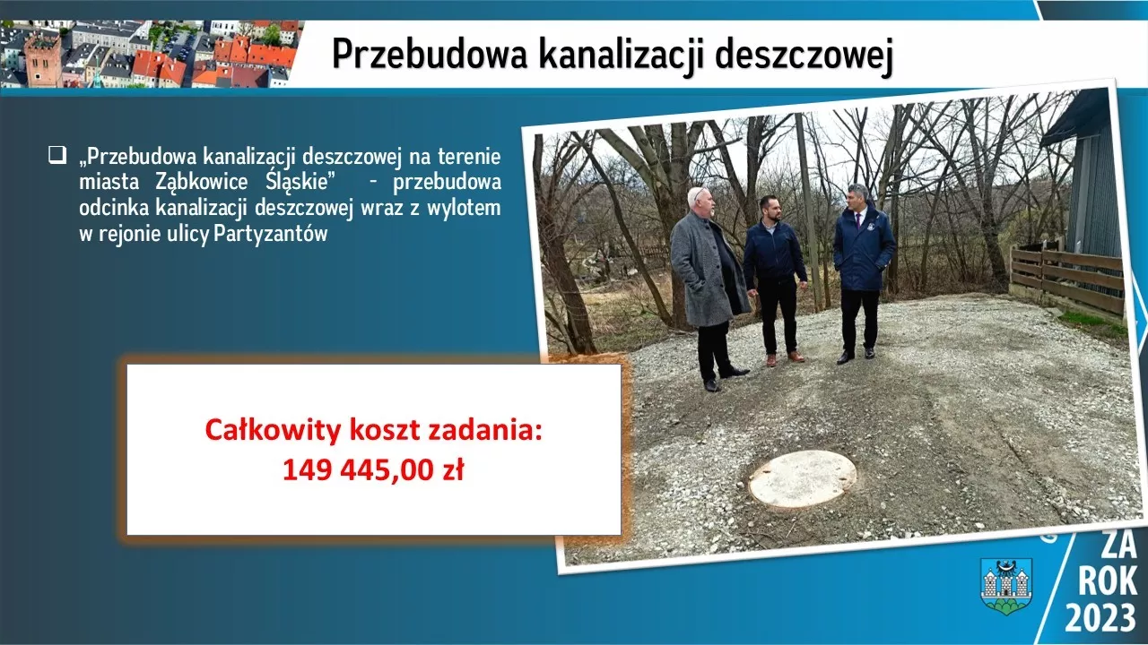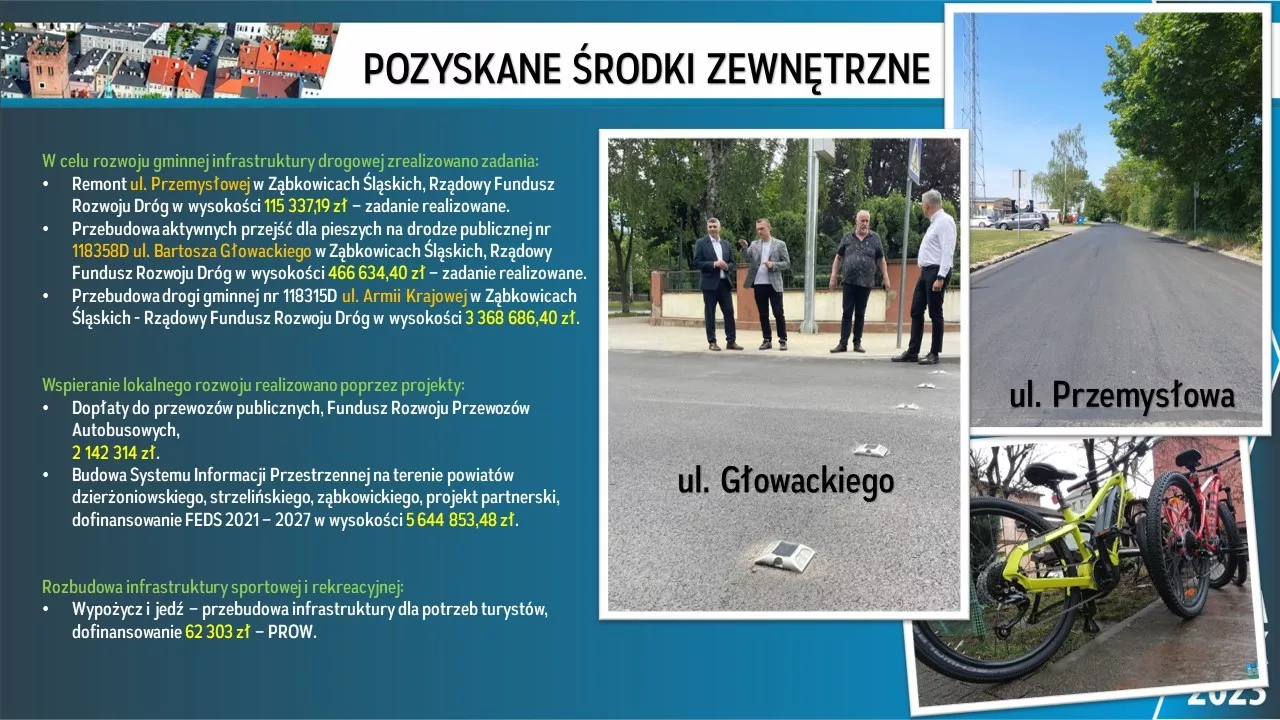 Sprawozdanie burmistrz Ząbkowic Śląskich przedstawił w formie prezentacji, w której omówił dochody i wydatki gminy oraz najważniejsze zrealizowane inwestycje.
