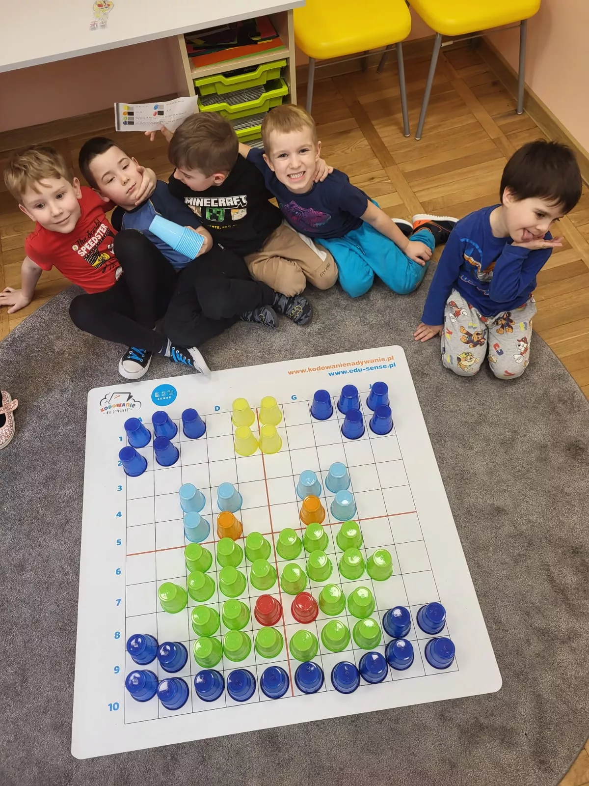 - 2 zestawy Rozszerzony z dwoma średnimi matami do kodowani edusense, które świetnie sprawdzają się w pracy z całą grupą. W zestawie znajdują się krążki matematyczne, wykorzystywane przy różnego rodzaju pracy strategiczno-matematycznej, zabawach z figurami geometrycznymi.