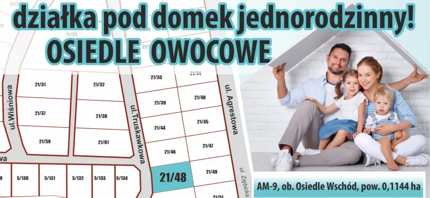 Dostępna działka pod domek jednorodzinny na Osiedlu Owocowym! – wadium do 11 czerwca 2021 r.