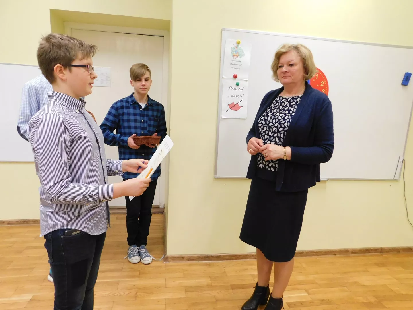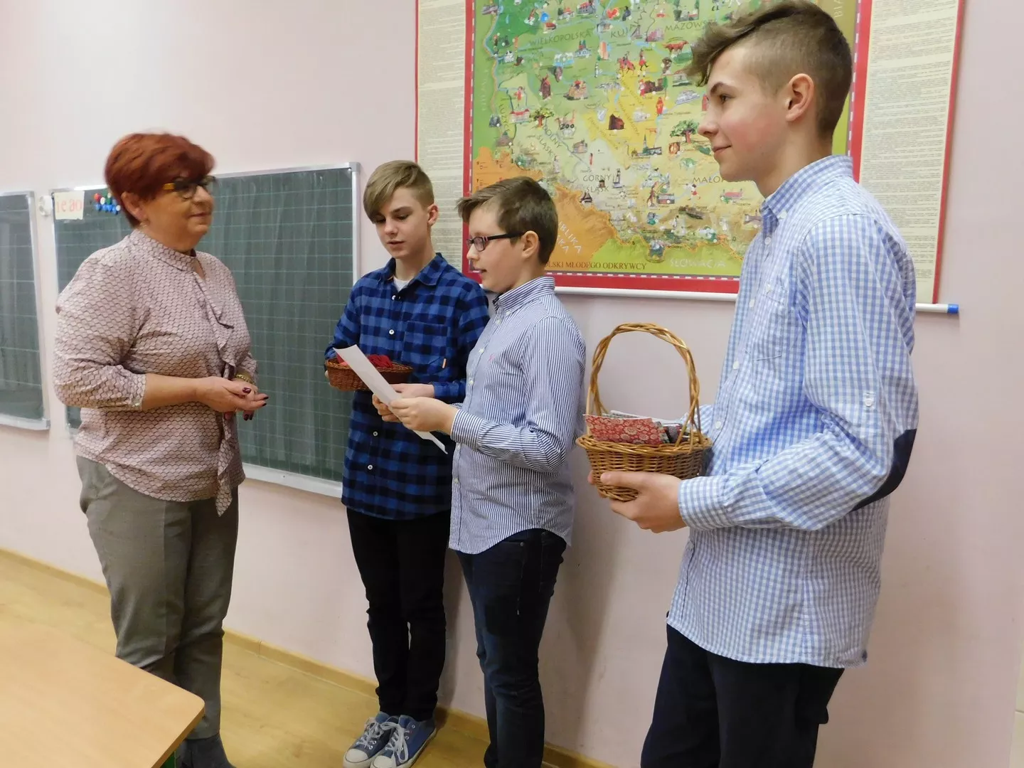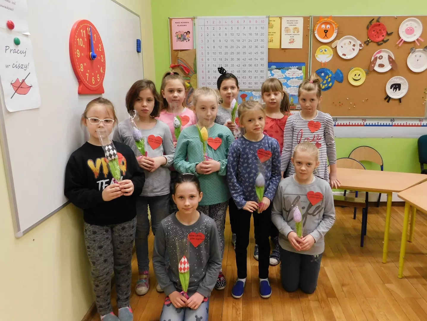 Święto wszystkich pań – i małych, i dużych – uczciliśmy w tym roku kilkoma akcjami. Redaktorzy „Nowinek z Jedynki” przygotowali dla nauczycielek i pracownic życzenia oraz wręczyli pamiątkowe kartki. Dla naszych uczennic pracowicie wycinali czerwone serduszka z napisem „Jesteś kobietą – jesteś wyjątkowa”. To motto towarzyszyło nam przez cały dzisiejszy dzień.