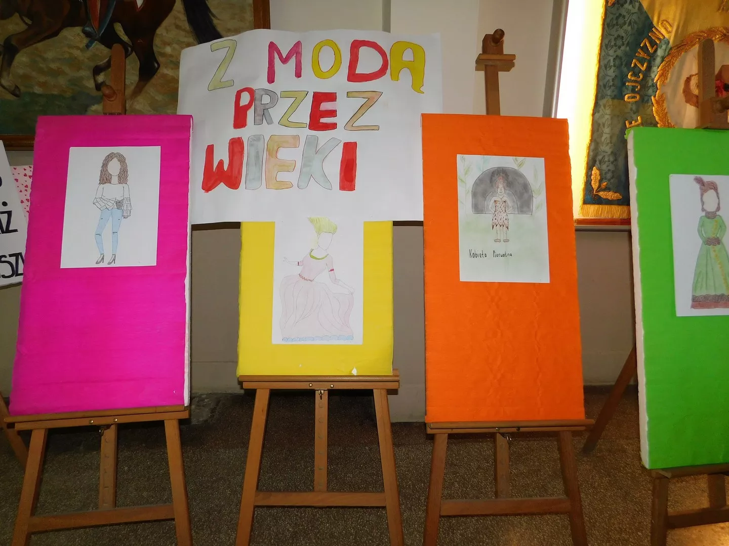 Z okazji Dnia Kobiet w holu szkoły pojawiła się także wystawa prac plastycznych „Z modą przez wieki”. Wiadomo przecież, że niezależnie od tego, w jakich czasach żyjemy i jakie mamy środki, kobiety uwielbiają modę. Ta natomiast w ciągu stuleci zmieniała się wielokrotnie, co świetnie uchwycili nasi młodzi artyści.