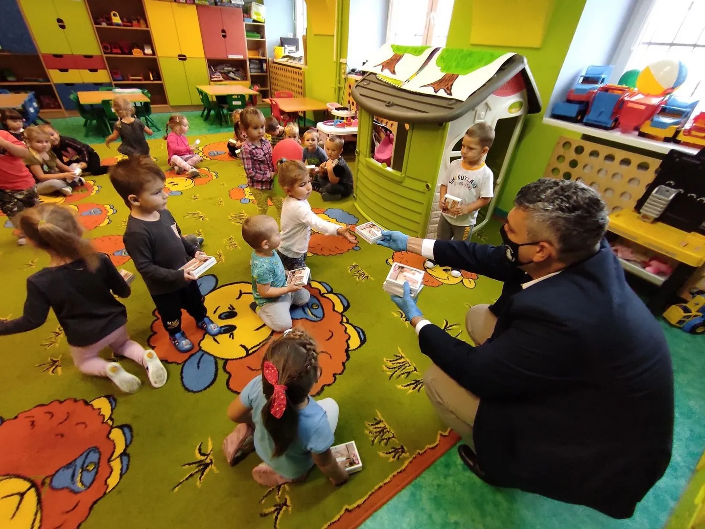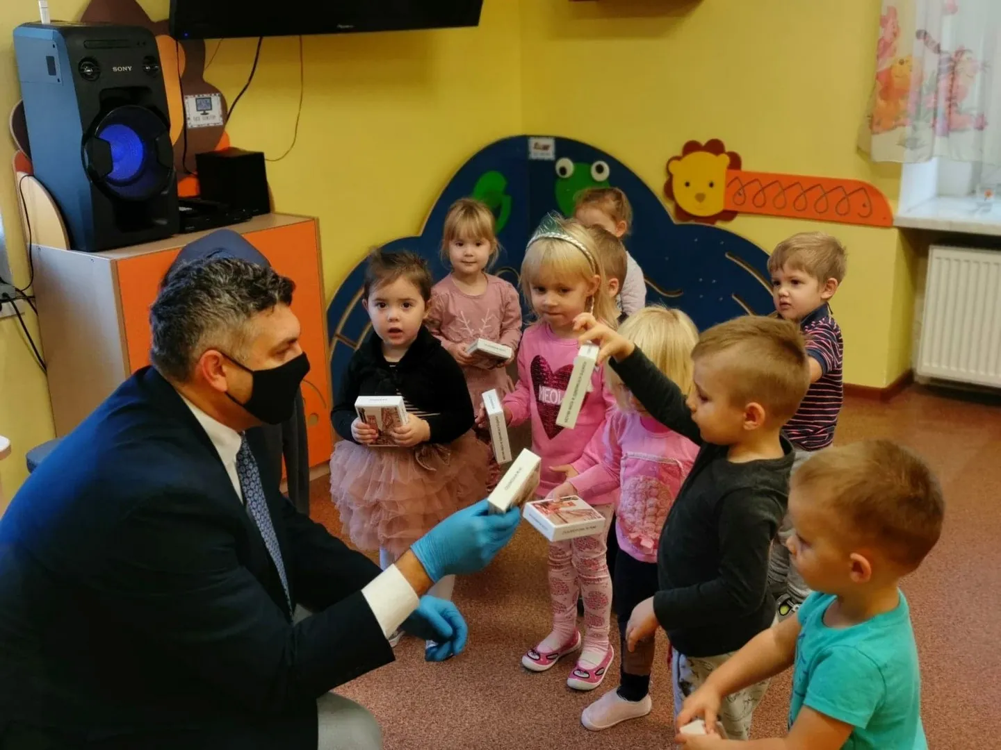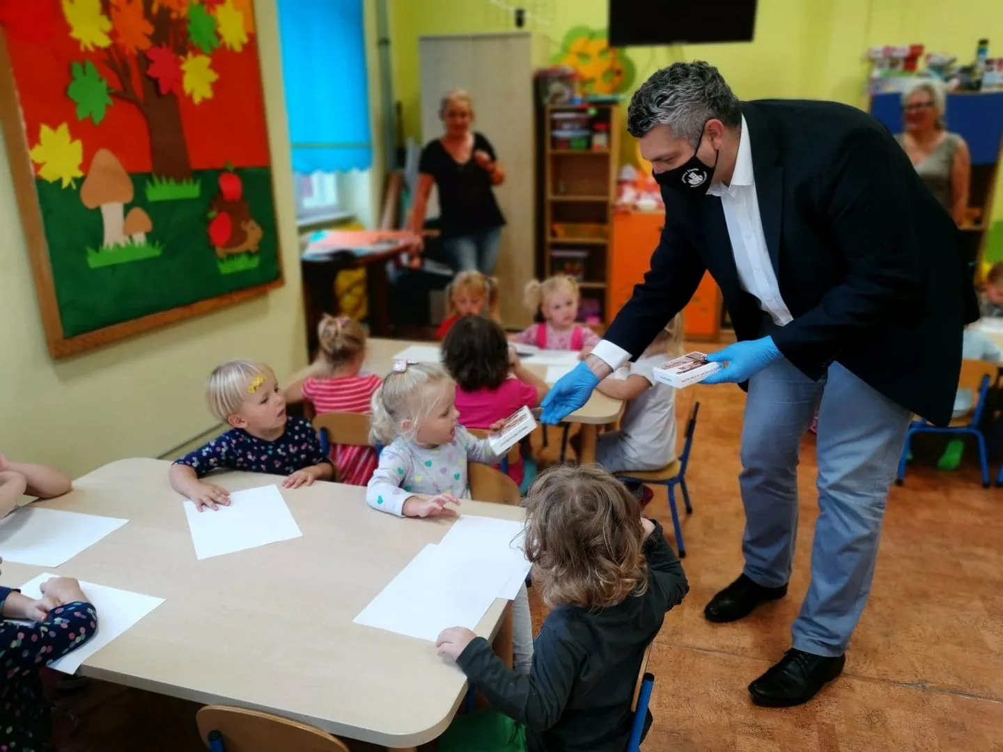 Jak co roku burmistrz Marcin Orzeszek odwiedził przedszkolaków z naszej gminy – tak z publicznych jak i niepublicznych placówek z okazji Dnia Przedszkolaka. Przypada on na 20 września, jednak z uwagi na dużą ilość dzieci (ponad 800 we wszystkich przedszkolach) i konieczność zachowania wszelkich standardów bezpieczeństwa, nie dało się jednego dnia odwiedzić wszystkich. W tym roku na swoje święto przedszkolaki otrzymały 24-elemntowe puzzle z wizerunkiem Krzywej Wieży.