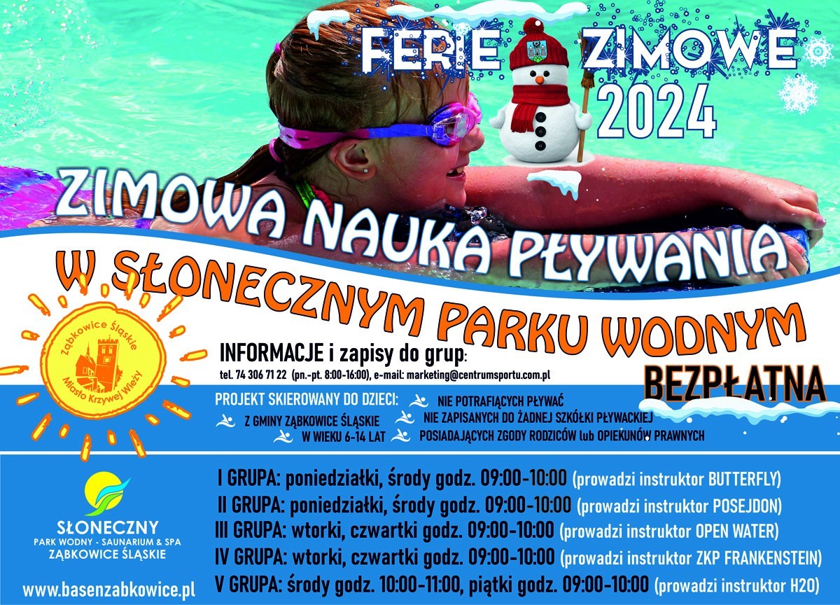 Ferie Zimowe 2024 r. - Zimowa Naukowa Pływania w Słonecznym Parku Wodnym