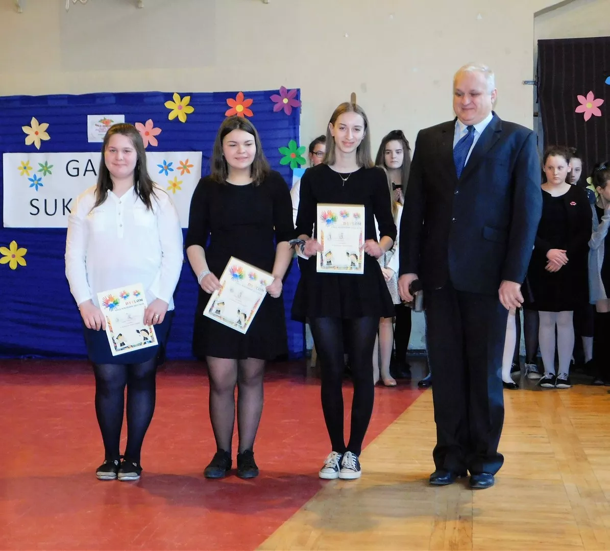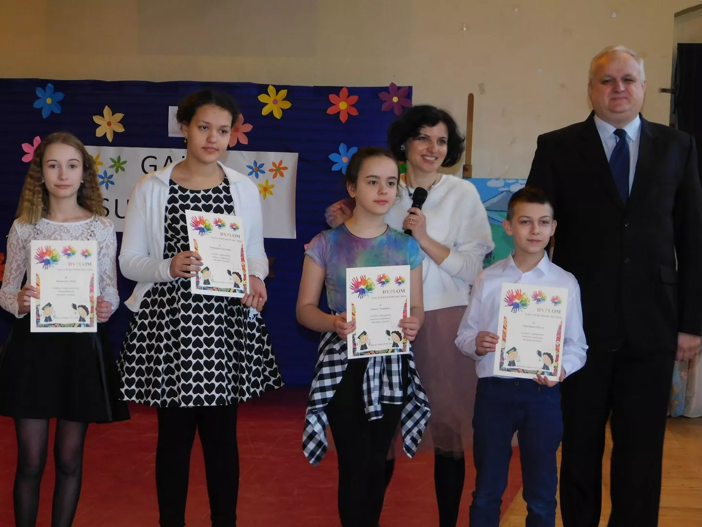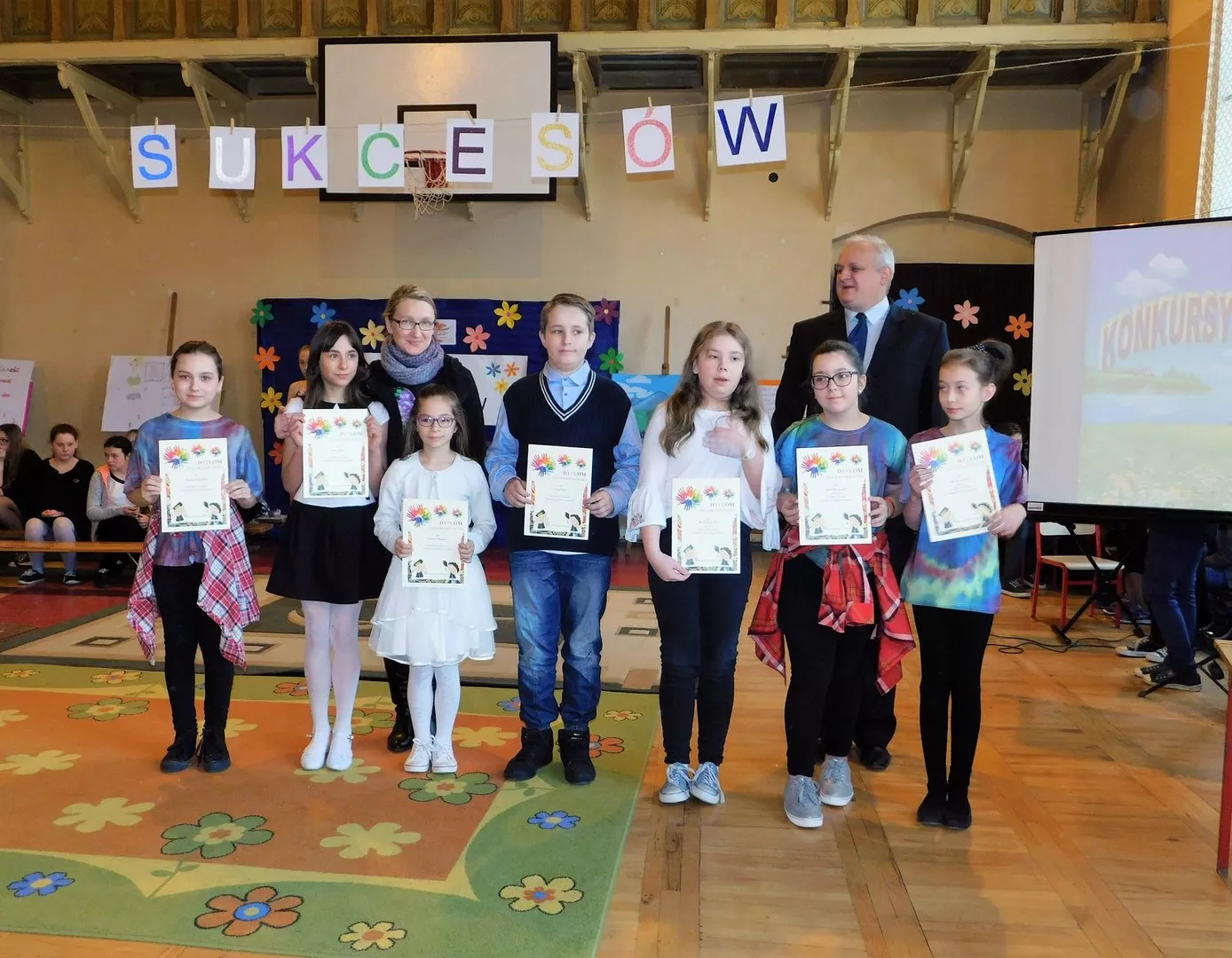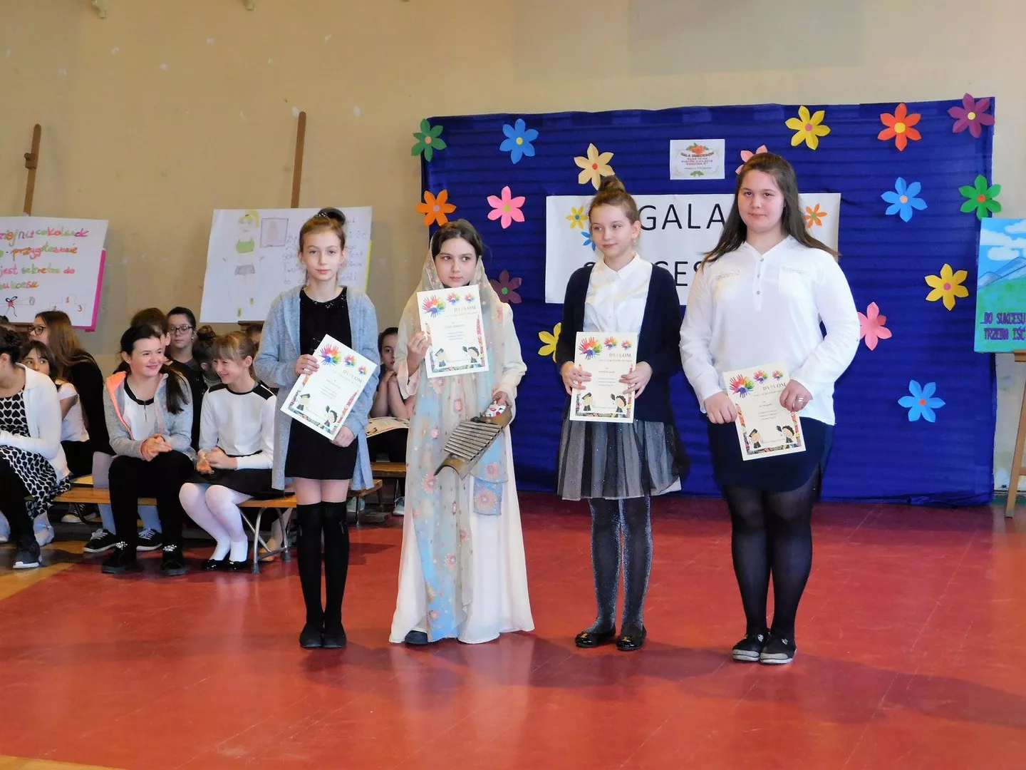 Na początku gali utwór muzyczny na pianinie zagrał uczeń klasy VIIa – Jakub Kuzakowski. Następnie swoje talenty wokalne zaprezentowały dziewczyny z klasy V i VII – Julia Krawczyk i Olga Jałowiecka. Po każdym występie Dyrektor Andrzej Popławski wręczał nagrody za uczestnictwo w konkursach w różnych kategoriach (m.in. matematycznych, recytatorskich, przyrodniczych, plastycznych, muzycznych itp.). W trakcie gali uczniowie nie tylko śpiewali, ale również recytowali wiersze, tańczyli, a uczennica klasy VIIb – Sara Krekora – zaprezentowała piękny pokaz gimnastyki artystycznej. Na koniec nagrodzono uczniów z najwyższymi średnimi ocen i wzorowym zachowaniem. Statuetki wręczył gość specjalny gali – wiceburmistrz Ewa Figzał.