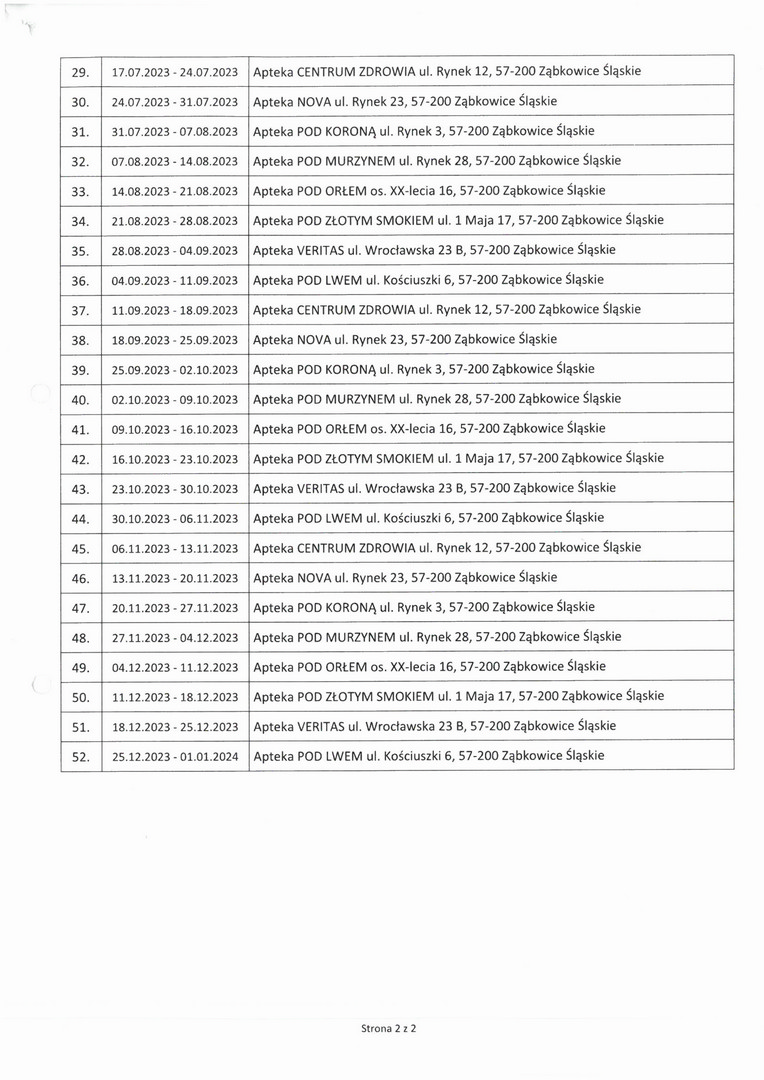 Harmonogram nocnych dyżurów aptek w 2023 roku