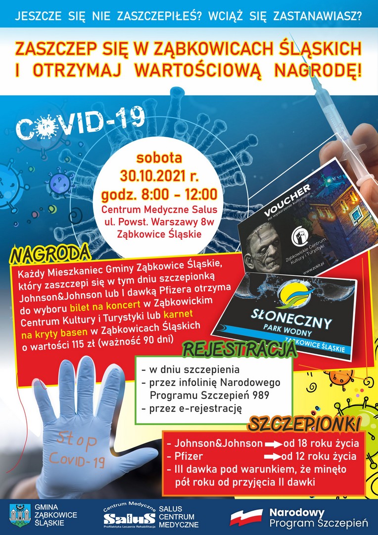 Szczepienia w dniu 30.10.2021 w godzinach 8.00 -12.00 w CM Salus ul. Powstańców Warszawy 8 w, Ząbkowice Śląskie.