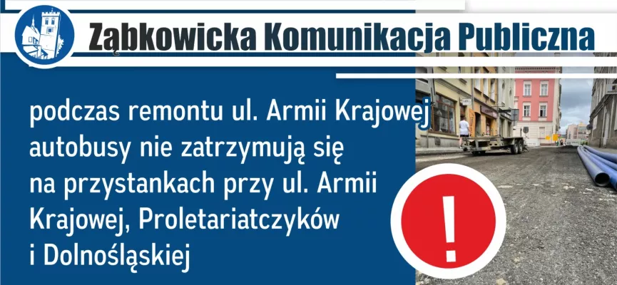 Komunikat dla pasażerów Ząbkowickiej Komunikacji Publicznej - przystanki nieczynne na czas remontu