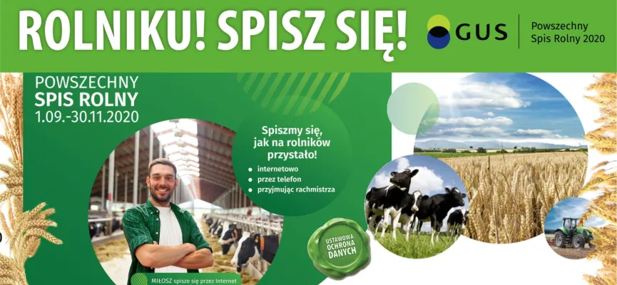 Od 1 września br. na terenie całej Polski przeprowadzany jest Powszechny Spis Rolny, który potrwa do 30 listopada 2020 r. Więcej informacji o spisie znajdziesz tutaj: https://rolny.spis.gov.pl/
