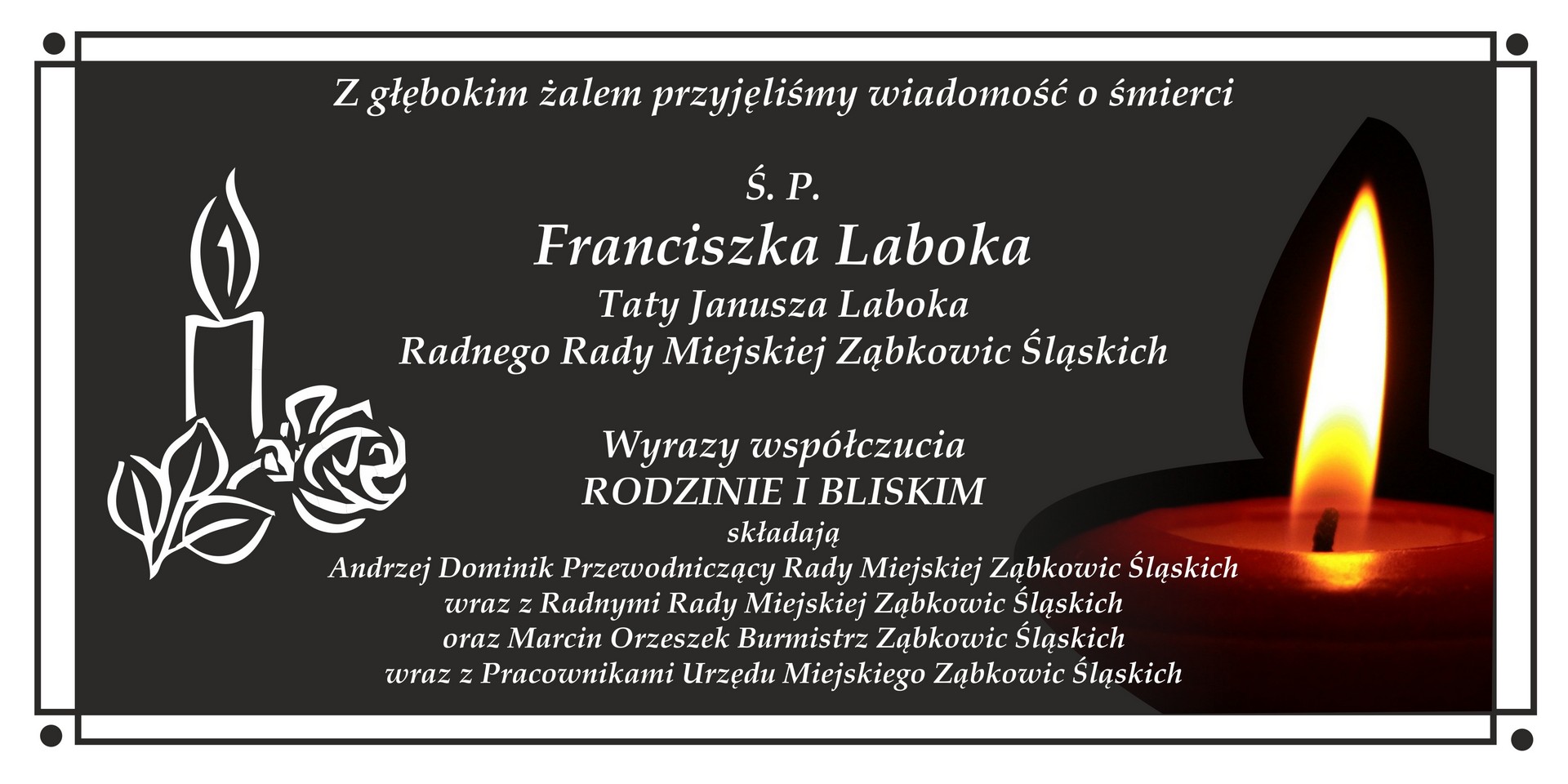 Kondolencje dla Rodziny i Bliskich Franciszka Laboka