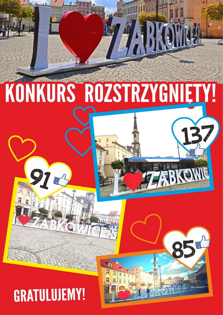 Zadaniem konkursowym było zamieszczenie zdjęcia własnego autorstwa przy nowej atrakcji na Ząbkowickim Rynku ”I ♥Ząbkowice Śl”. Zdjęcie należało umieścić jako komentarz pod postem konkursowym oraz polubienie posta i Fanpage Ząbkowice Śląskie Miasto Krzywej Wieży.