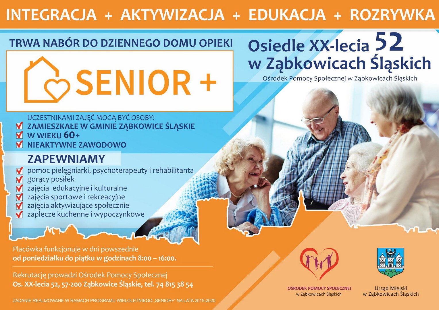 Osoby zainteresowane uczestnictwem w zajęciach realizowanych w Dziennym Domu Senior+ w Ząbkowicach Śląskich zapraszamy do składania formularza zgłoszeniowego w Ośrodku Pomocy Społecznej Osiedle XX-lecia 52 w Ząbkowicach Śląskich w dniach od poniedziałku do piątku w godzinach od 7:30 do 15:30. Druk formularza można otrzymać w Ośrodku Pomocy Społecznej w Ząbkowicach Śląskich lub pobrać ze strony www.opszabkowiceslaskie.pl.