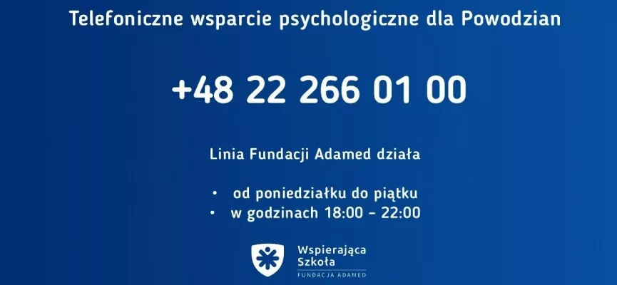 Numer telefonicznej pomocy psychologicznej Fundacji Adamed dla osób poszkodowanych powodzią