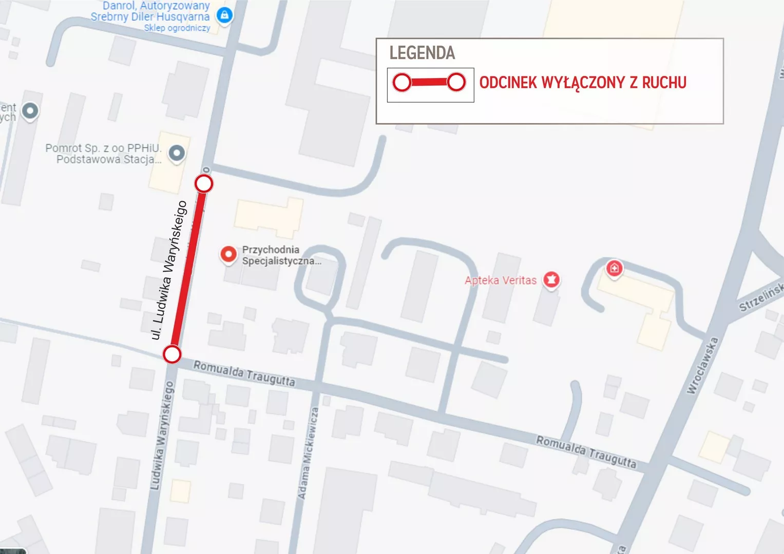 o wyłączeniu z ruchu odcinka ul. Waryńskiego na długości od skrzyżowania z ul. Traugutta do wjazdu na posesję budynku nr 18A-B w dniach 18.09.2024 r. - 23.09.2024 r.