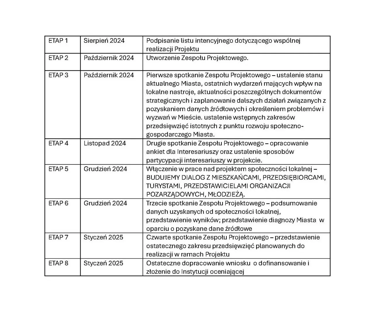 Poniżej przedstawiamy harmonogram prac nad wnioskiem i zachęcamy do aktywnego udziału w jego poszczególnych etapach: