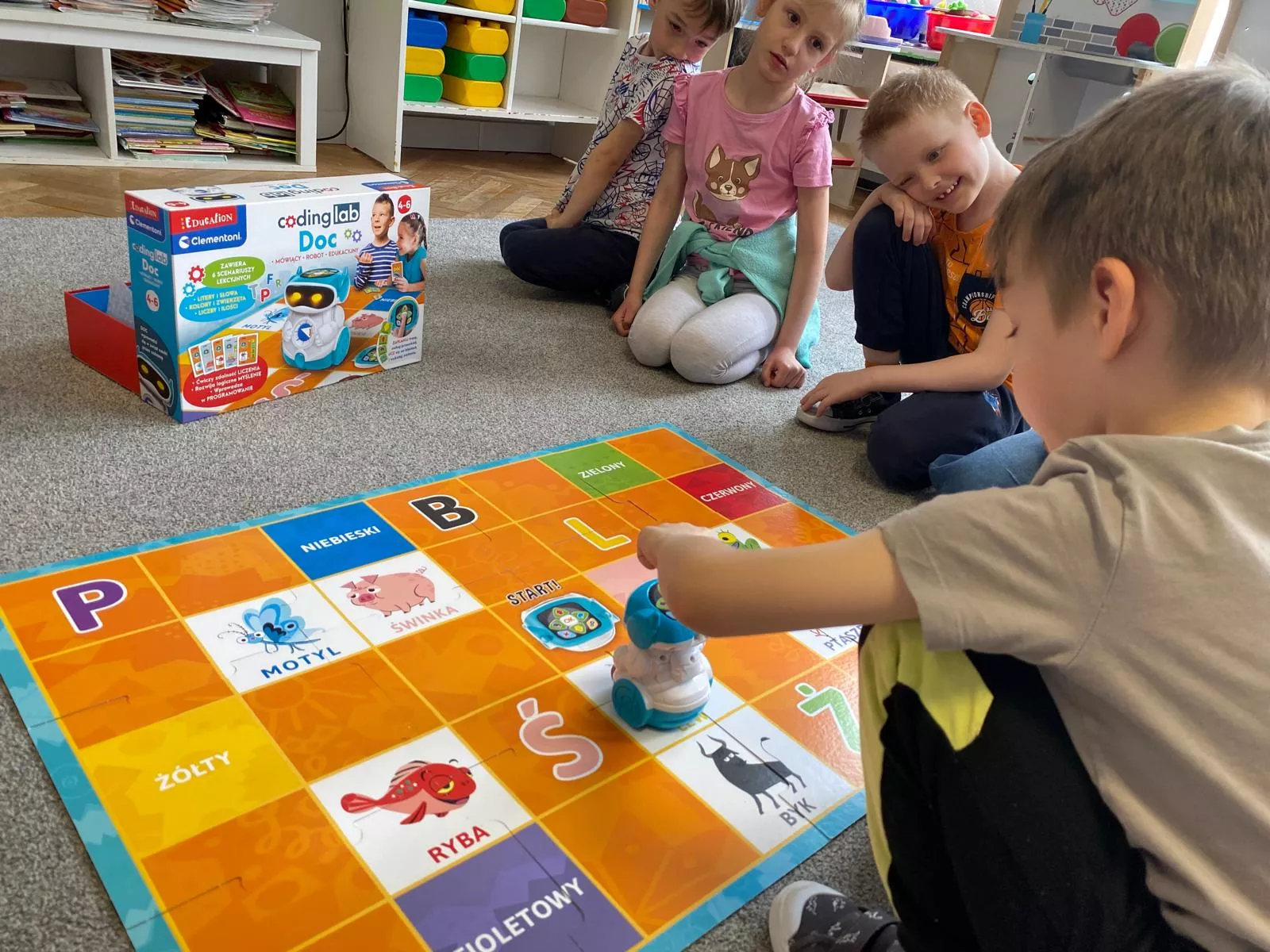 - edukacyjne roboty Coding Lab: robot towarzyszy dzieciom w nauce: pomaga rozwijać umiejętności logicznego myślenia i rozwiązywania problemów, w kreatywny i zabawny sposób wprowadza dzieci w świat Robotyki Edukacyjnej. Robota można programować tak, aby pokonywał trasy dowolne lub określone poleceniami na kartach, rozwijając przy tym zmysł logiczny i rozwiązując pierwsze problemy;