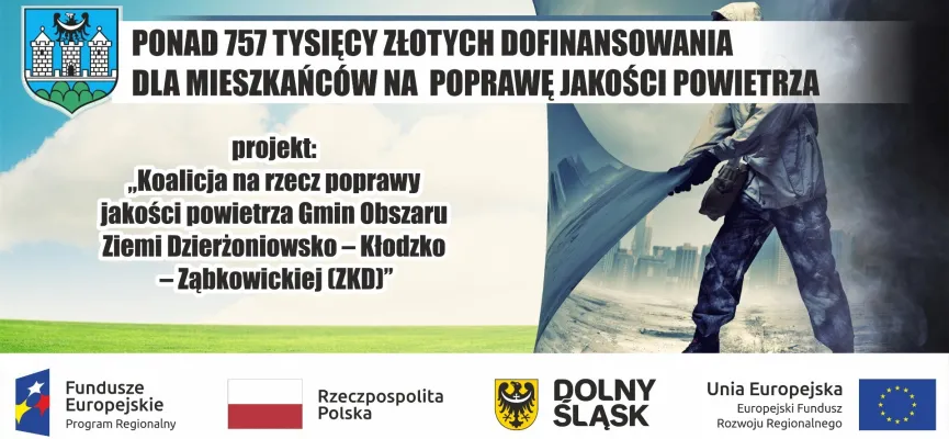 Projekt dofinansowany w ramach konkursu RPDS.03.03.01-IP.01-02-324/18 z Regionalnego Programu Operacyjnego Województwa Dolnośląskiego 2014 – 2020, oś priorytetowa 3. Gospodarka niskoemisyjna, Działanie 3.3 Efektywność energetyczna w budynkach użyteczności publicznej i sektorze mieszkaniowym, Poddziałanie 3.3.1 – Efektywność energetyczna w budynkach użyteczności publicznej i sektorze mieszkaniowym na terenie OSI ZKD, typ 3.3 e Modernizacja systemów grzewczych i odnawialne źródła energii – projekty dotyczące zwalczania emisji kominowej – formuła grantowa.