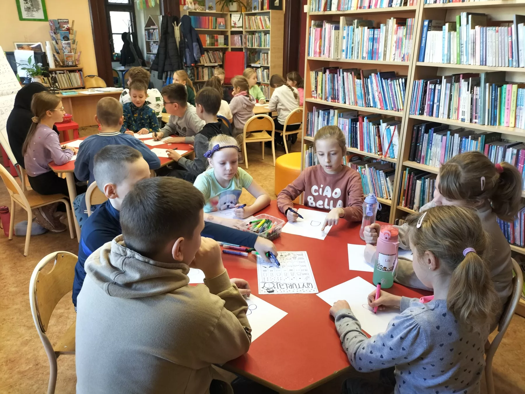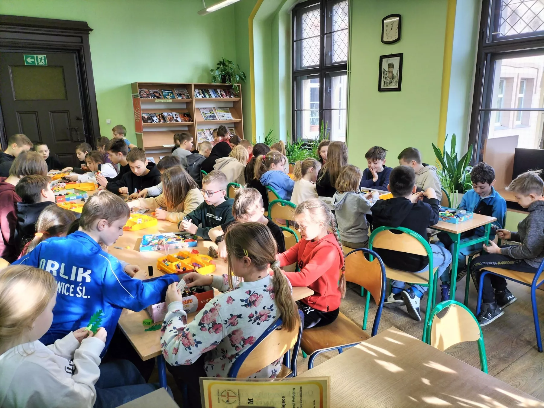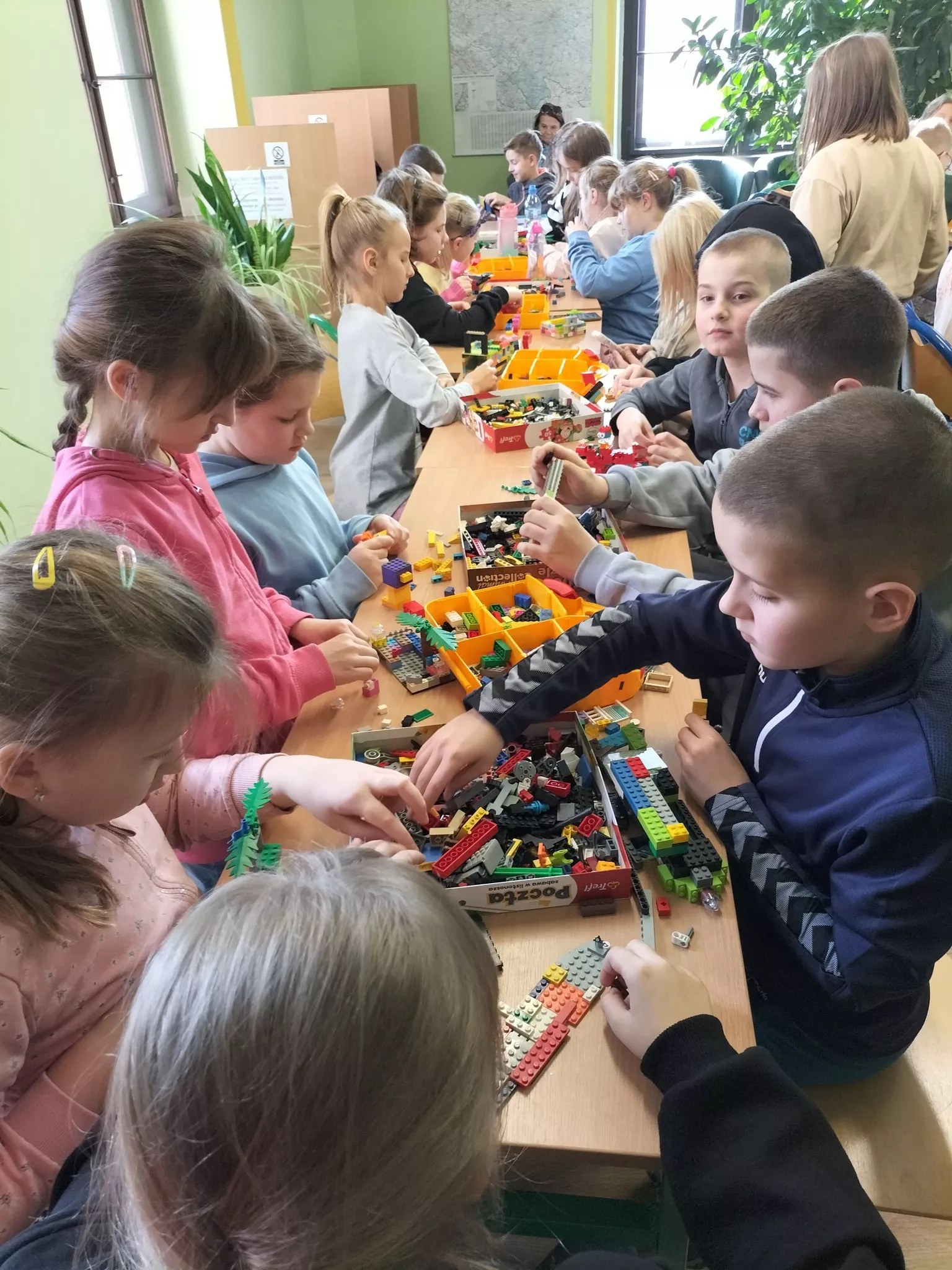 W zajęciach feryjnych w bibliotece wzięło w tym roku udział 320 dzieci. W poniedziałki panowało szaleństwo gier i zabaw. Na stołach królowały karty, planszówki, zgadywanki oraz kolorowanki. Podczas zajęć plastycznych i kreatywnych wykonywaliśmy zimowe pejzaże, maski karnawałowe, karmniki dla ptaków oraz walentynkowe ramki i breloki. W środy ćwiczyliśmy logiczne myślenie i spostrzegawczość. Największą popularnością cieszyły się zajęcia z klockami LEGO. Biblioteka przeobrażała się w miejsce budowlanej fantazji. Wyobraźnia i umiejętności dzieci i młodzieży pozwoliły na stworzenie kreatywnych LEGOKREACJI. Tegoroczne ferie upłynęły bardzo szybko w miłej i twórczej atmosferze.
