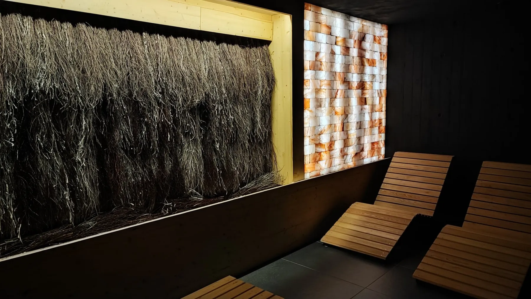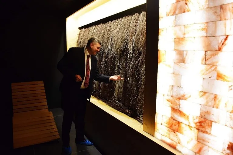- łaźnia parowa z temperaturą od 45 do 60 stopni Celsjusza i wilgotnością 100 proc oraz tężnia solankowa, deptak zewnętrzny z basenem do schładzania ciała i strefa natryskowa.