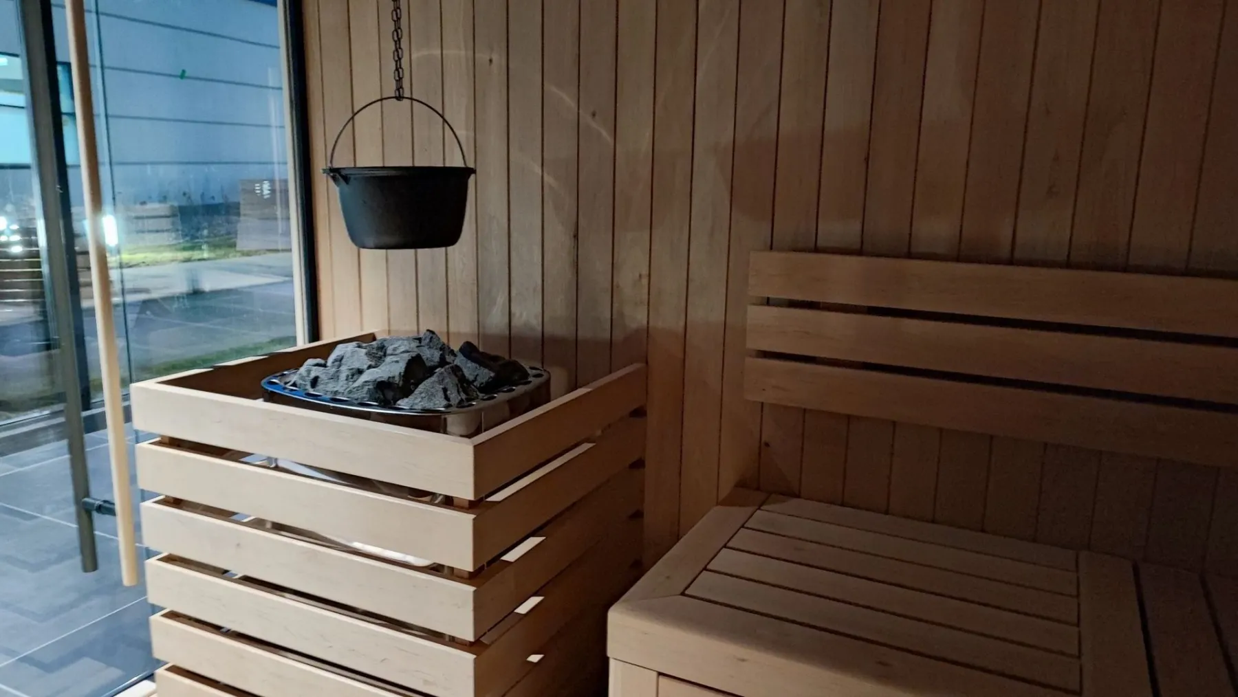 - sauna fińska łagodna, w której temperatura będzie oscylować na poziomie 80-90 stopni Celsjusza z wilgotnością do 35 proc,