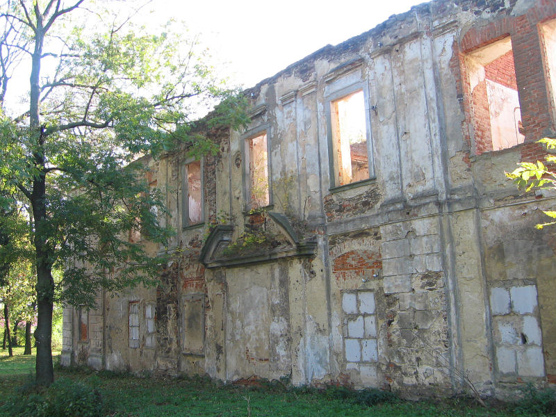 Rezydencja wzniesiona w stylu barokowym w latach 1703-1710, przebudowywana w 1830 i 1880 roku przez rodziną Dittrich. Budynek murowany z cegły, potynkowany, założony na planie prostokąta, dwukondygnacyjny, nakryty był niezachowanym dachem czterospadowym z powiekami. Fasada (elewacja południowa) dziewięcioosiowa, z głównym wejściem poprzedzonym portykiem filarowym podtrzymującym taras. Elewacja północna (fasada przed przebudową) również dziewięcioosiowa, z resztkami barokowego portalu, ponad którym znajdował się kartusz herbowy opata Ackermanna z 1710roku. Zrujnowany budynek zachował część architektonicznych detali: obramowania otworów okiennych, fragmenty boniowania przyziemia i pilastry dzielące elewacje na wysokości drugiej kondygnacji. Układ wnętrz częściowo dwu-, częściowo trzytraktowy, niektóre pomieszczenia w przyziemiu nakrywają sklepienia kolebkowe i nieckowe z lunetami.