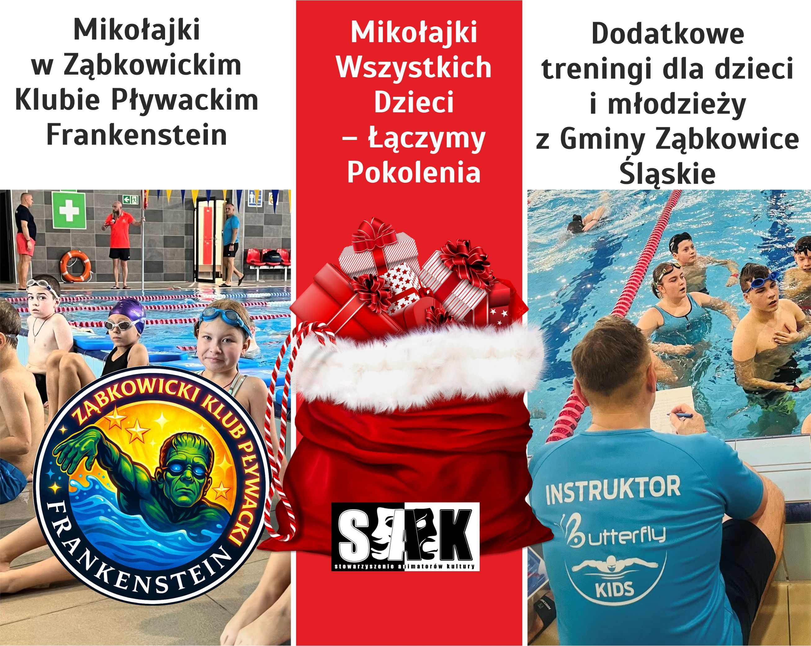 Ząbkowicki Klub Pływacki „Frankenstein” realizować będzie zadanie pn. „Mikołajki w Ząbkowickim Klubie Pływackim Frankenstein”, w ramach zadania Klub zorganizuje Mikołaja dla dzieci uczęszczających na zajęciach na basenie wraz z wręczeniem paczek mikołajkowych, zadanie wsparto kwotą 5 000,00 zł.