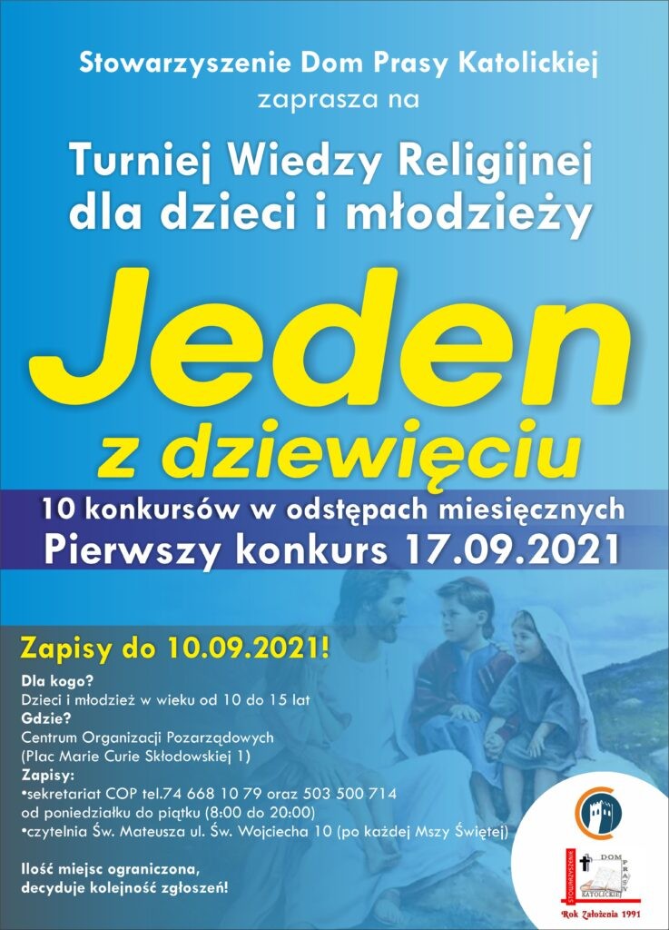 Turnieju Wiedzy Religijnej dla dzieci i młodzieży „Jeden z dziewięciu”!