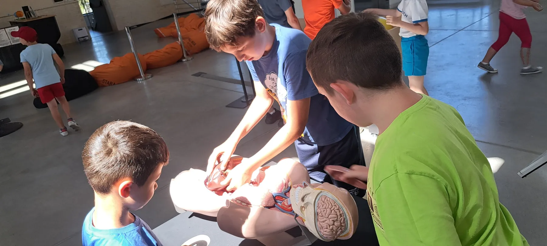Sierpień także był aktywnym miesiącem – dzieci i młodzież uczestniczyły w grach i zabawach lekkoatletycznych, w środowych Turniejach Piłki Nożnej, w Turnieju Badmintona na Hali Słonecznej, Turnieju Koszykówki 3x3 oraz w nauce gry w Teqball. Odbyła się także wycieczka do Minieurolandu -49 dzieci zwiedziło pod okiem przewodnika park miniatur zabytków z całego świata.