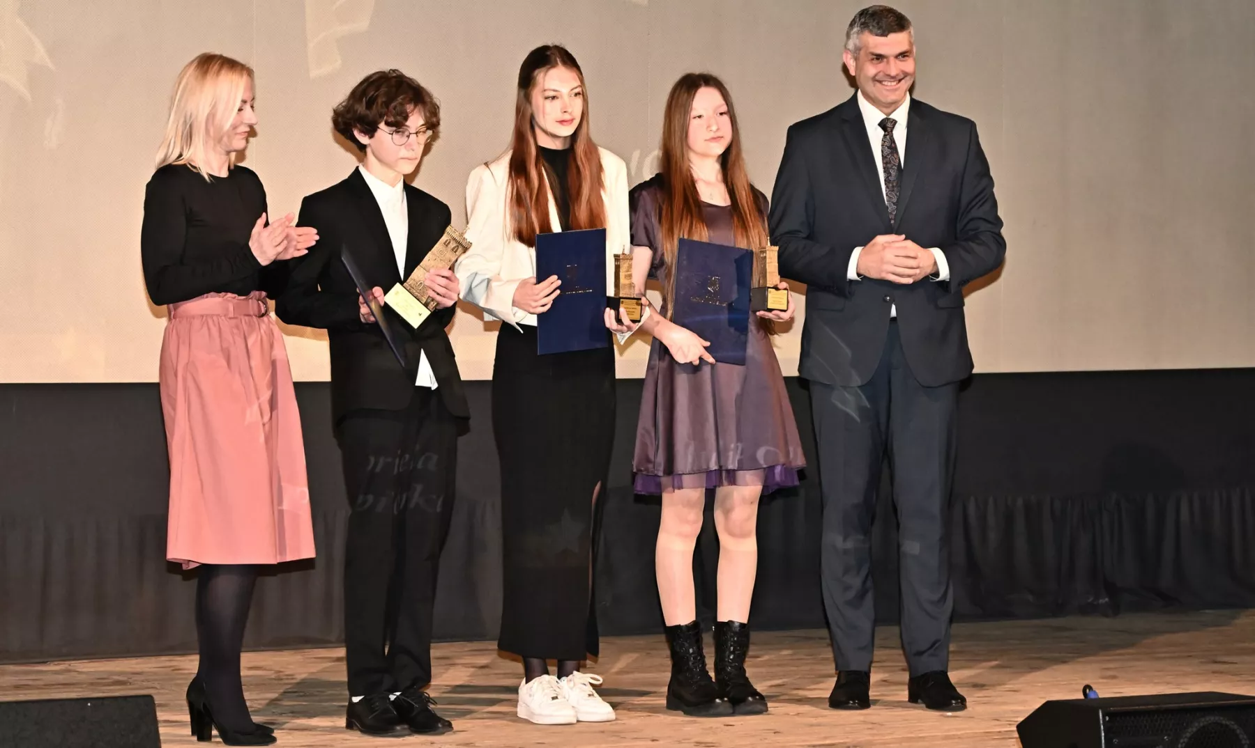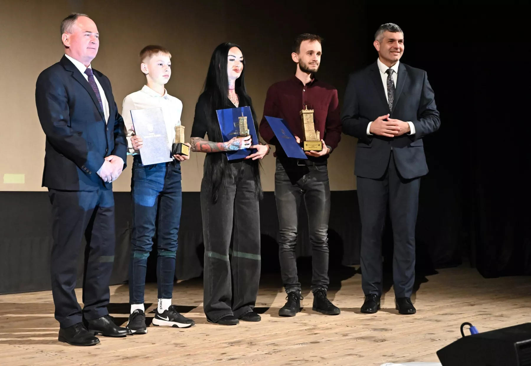 Statuetki wręczali burmistrz Marcin Orzeszek, zastępca burmistrza Rafał Rabenda, przewodniczący rady miejskiej Andrzej Dominik, Justyna Giryn - sekretarz gminy oraz Dorota Sierka - wiceprzewodnicząca rady miejskiej.