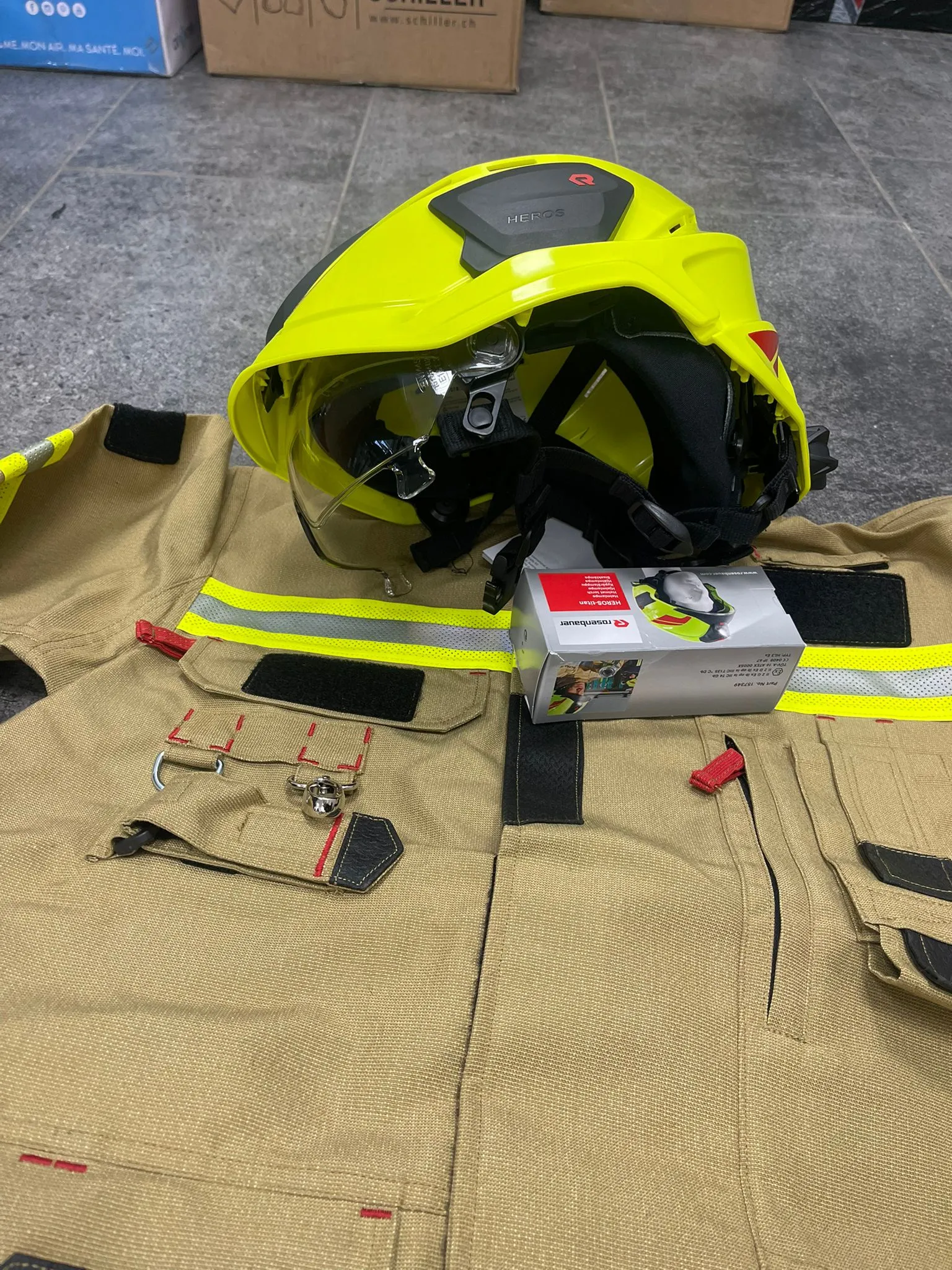- hełmy strażackie kompletne wraz z oświetleniem oraz transparentnymi okularami.