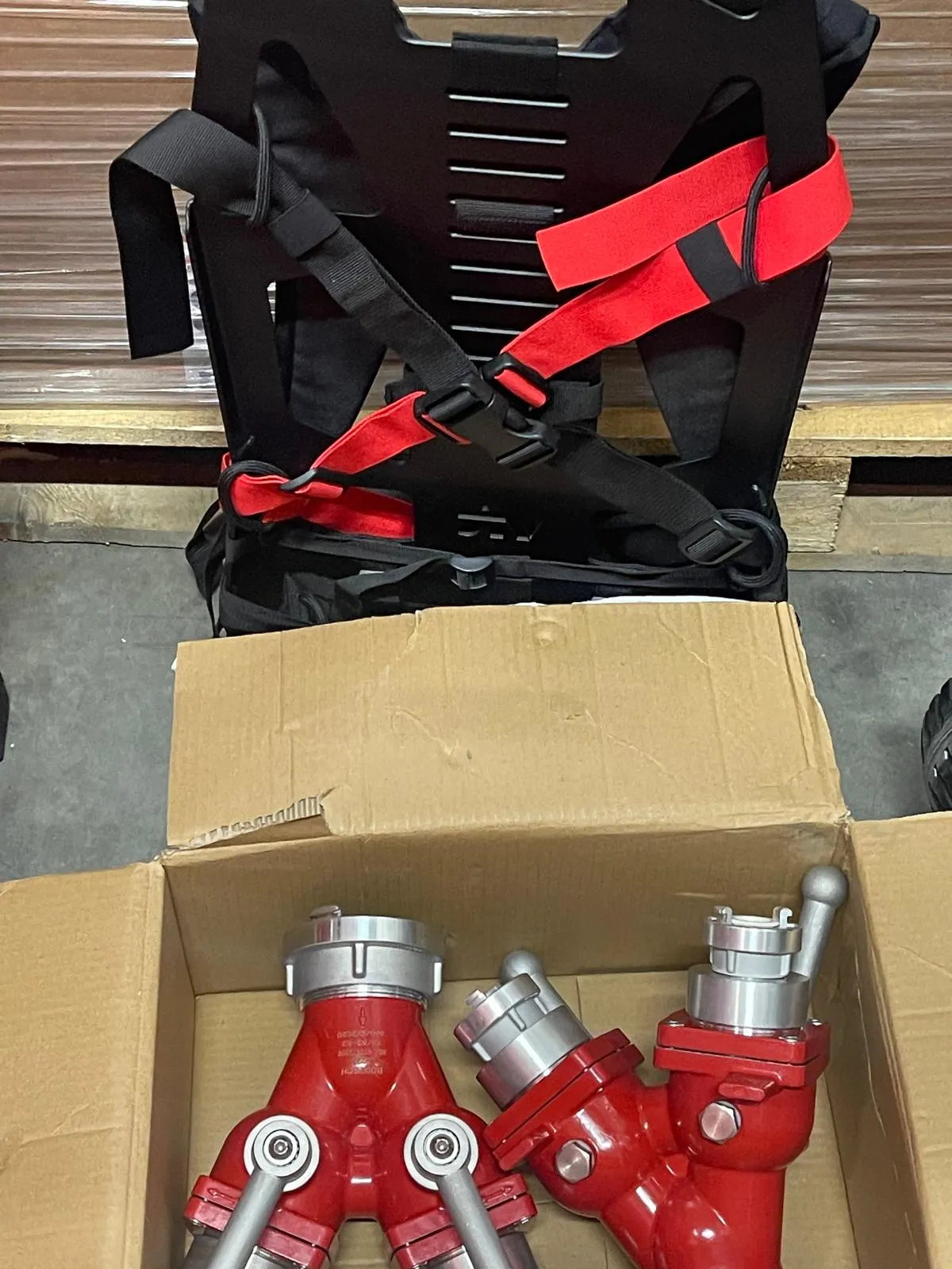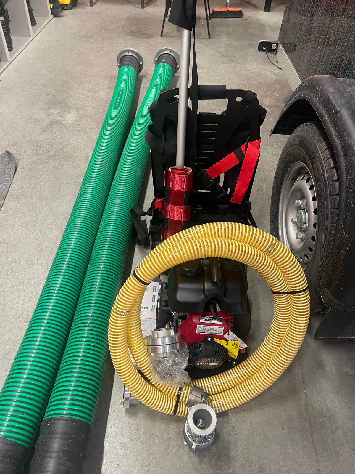 - 2 zestawy nasobnego sprzętu gaśniczego typu „mała woda” do gaszenia pożarów zewnętrznych.