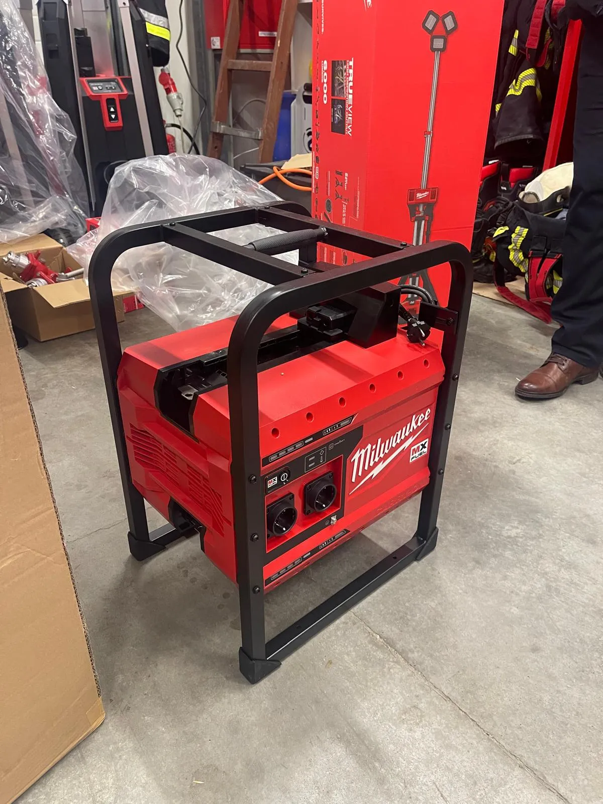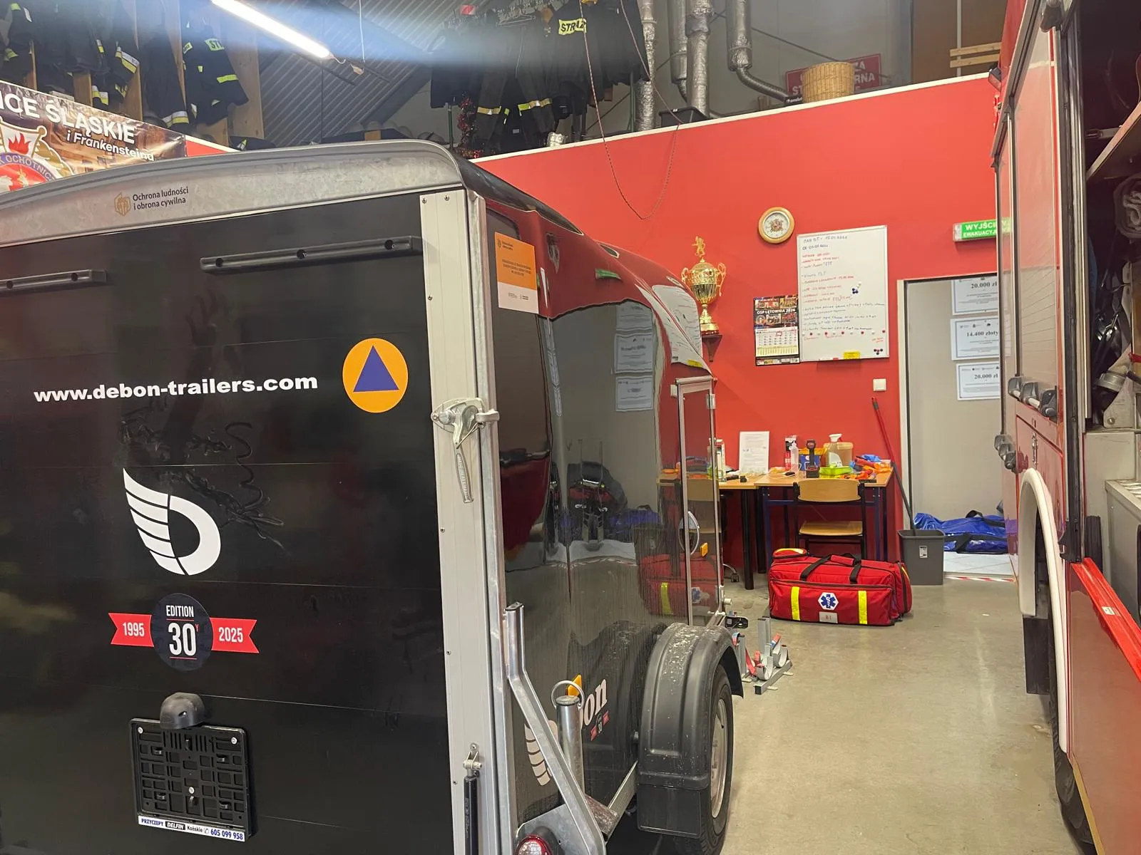 - przyczepę inżynieryjną z zestawem szybkiej interwencji, obejmującym m.in. narzędzia ratownicze akumulatorowe (wycinarka, wkrętarka, piła szablasta, rozpierak), oświetlenie, akumulatory oraz power bank z ładowarką;