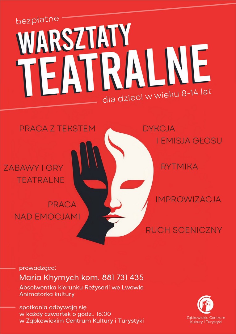 Szczegóły i kontakt: Maria Chymych – absolwentka kierunku reżyserii we Lwowie, animatorka kultury tel. 881 731 435 (zajęcia są bezpłatne).
