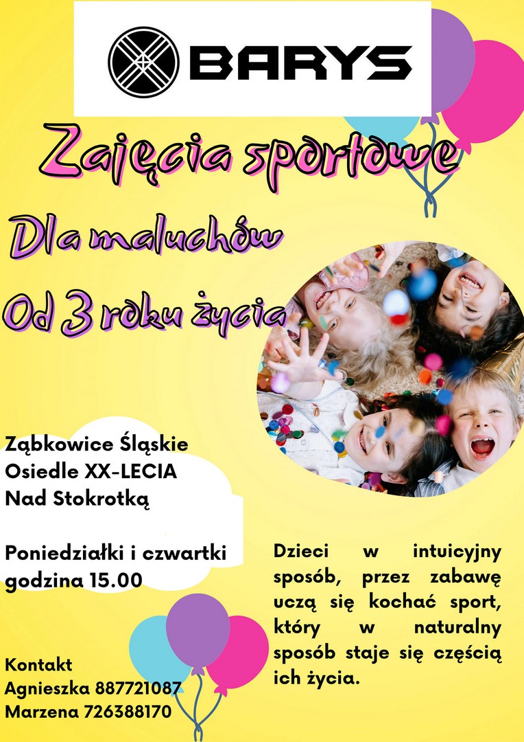 Sekcja Akrobatyka: Agnieszka tel. 887-721-087; Marzena tel. 726-388 170.
