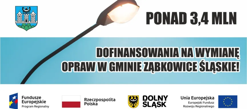 Miło nam poinformować, iż spośród wybranych do dofinasowania projektów znalazł się projekt „Ograniczenie niskiej emisji poprzez wymianę oświetlenia na energooszczędne na terenie gminy Ziębice, gminy Ząbkowice Śląskie i gminy Złoty Stok”, w którym partnerem jest Gmina Ząbkowice Śląskie.