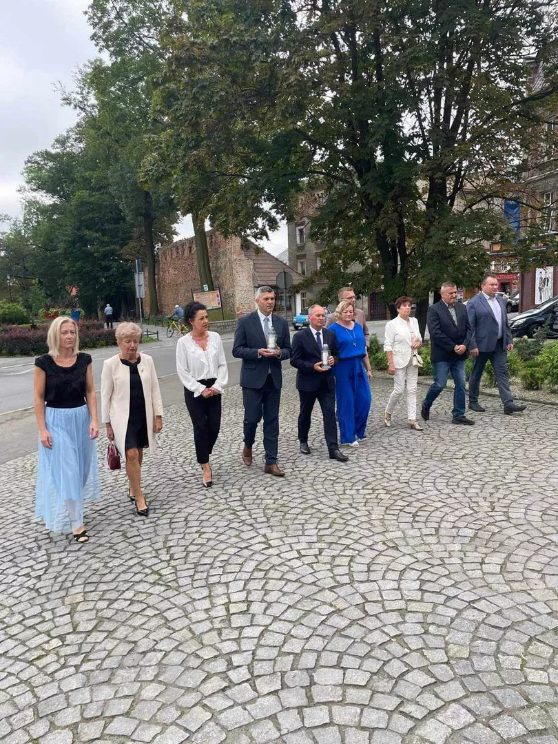 Pod pomnikiem Poległym za Ojczyznę burmistrz Ząbkowic Śląskich Marcin Orzeszek wraz z Przewodniczącym Rady Miejskiej Andrzejem Dominikiem i delegacją samorządu Gminy Ząbkowice Śląskie zapalili znicze, aby upamiętnić naszych rodaków, którzy walczyli na wszystkich frontach II Wojny Światowej.