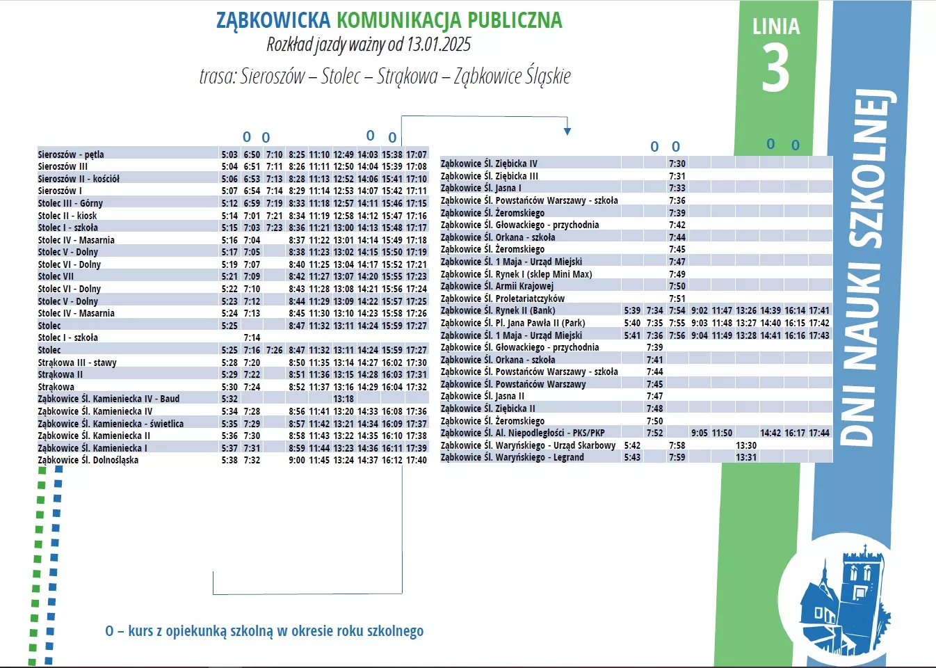 3 – zmiana słupka na kursie szkolnym w Stolcu (zatrzymywanie przed kościołem, nie szkołą), zmiana trasy kursów szkolnych rano;