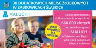 Dodatkowych 30 miejsc żłobkowych powstanie w Ząbkowicach Śląskich dzięki otrzymanemu dofinansowaniu w ramach programu „Maluch +”. Gmina pozyskała na ten cel 660 tysięcy złotych. W ramach projektu zostaną wykonane niezbędne prace budowlane dostosowujące budynek przy ulicy Krzywej 2 (była siedziba ksiąg wieczystych) do potrzeb żłobka. Planowany jest również zakup mebli, wyposażenia, pomocy dydaktycznych, zabawek i sprzętu dydaktycznego. Termin zakończenia prac to grudzień 2019 roku.