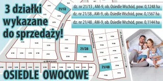 Informujemy, że wykazane zostały do sprzedaży 3 kolejne działki na Osiedlu Owocowym!