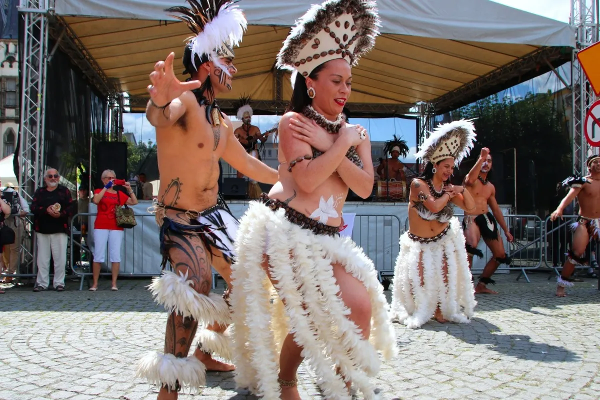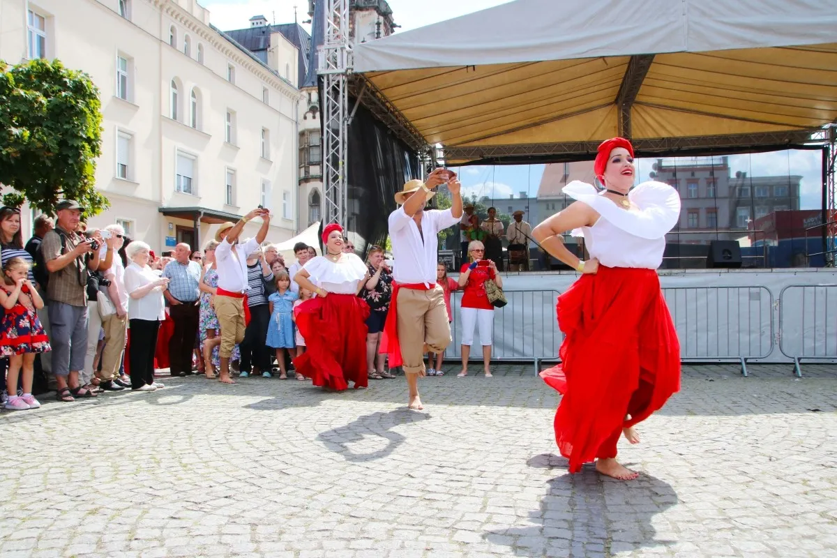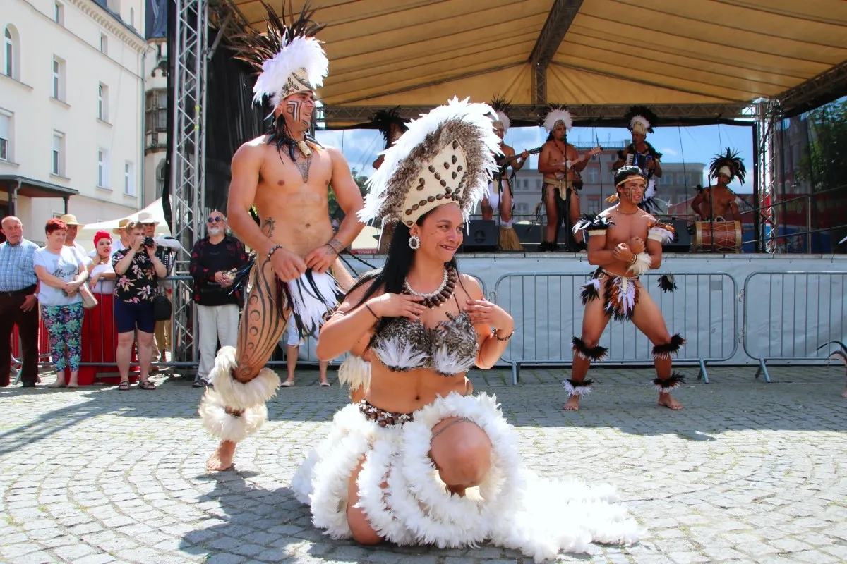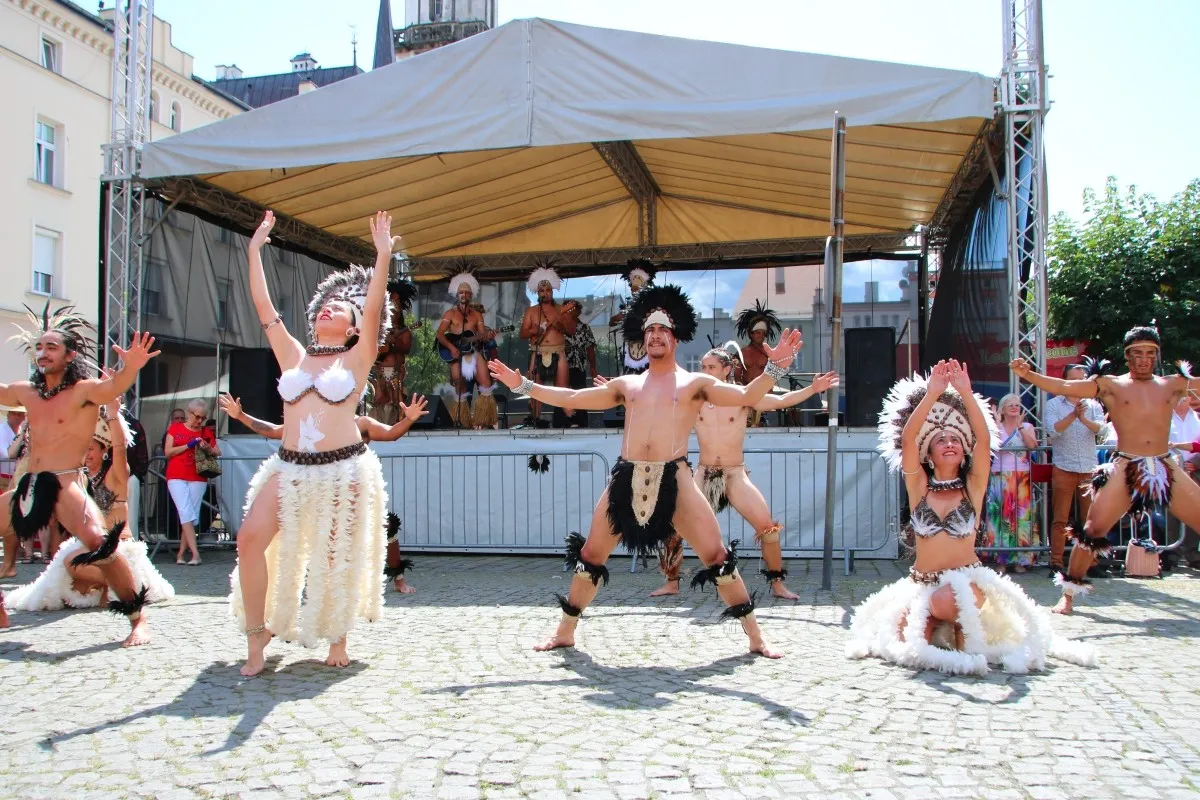 Artyści z Panamy i Wyspy Wielkanocnej na ząbkowickim rynku