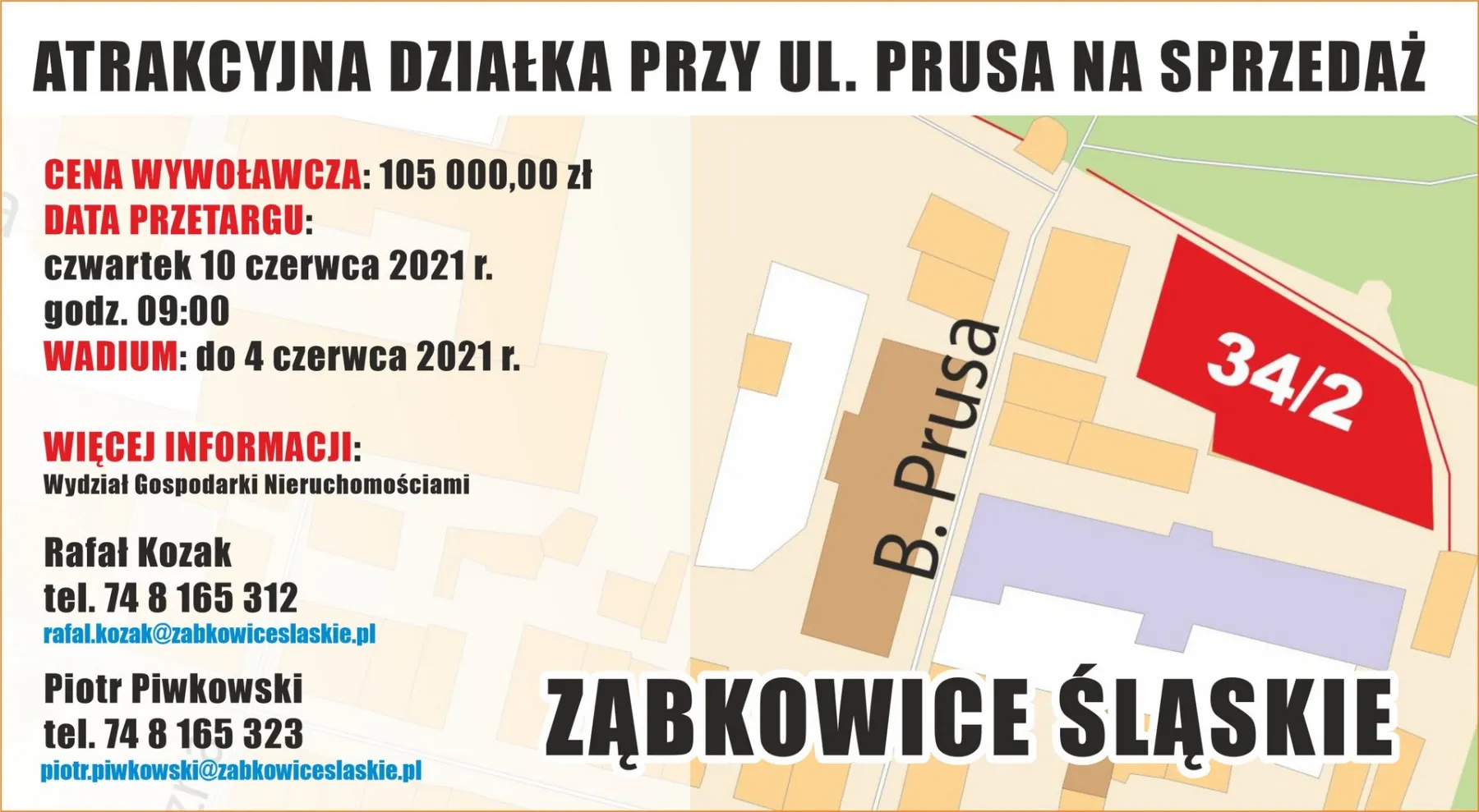 Szczegółowych informacji o w/w nieruchomości udziela pracownik Wydziału Gospodarki Nieruchomościami Urzędu Miejskiego w Ząbkowicach Śl. ul. 1 Maja 15; pokój nr 24; tel. 74 8 165 323.