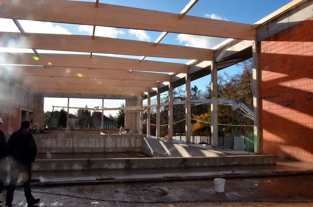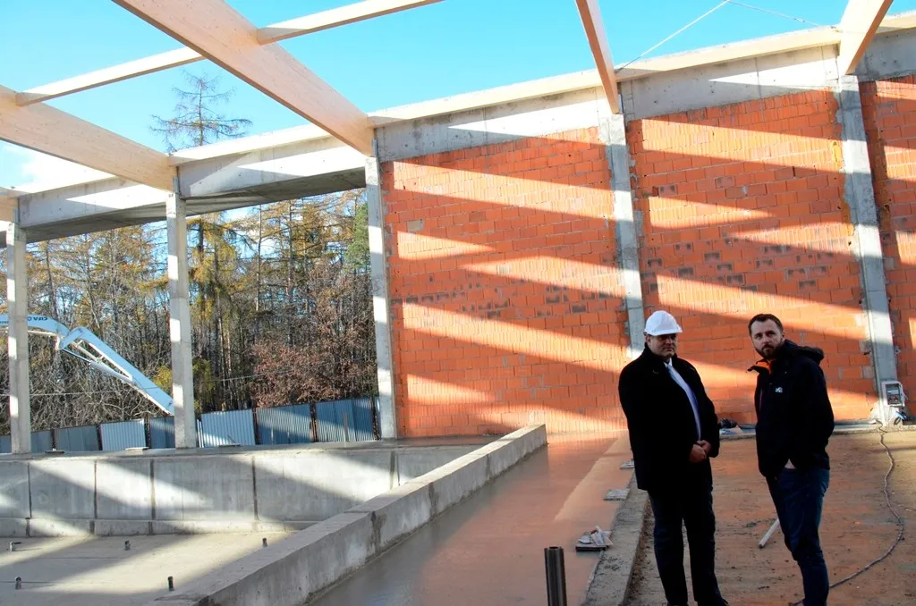 Marcin Orzeszek, Burmistrz Ząbkowic Śląskich odwiedził dziś budowę największej inwestycji w najnowszej historii naszej gminy – Budowę Krytego Basenu. Budowla rośnie w oczach, bryła obiektu jest już coraz lepiej widoczna. Prace idą pełną parą.