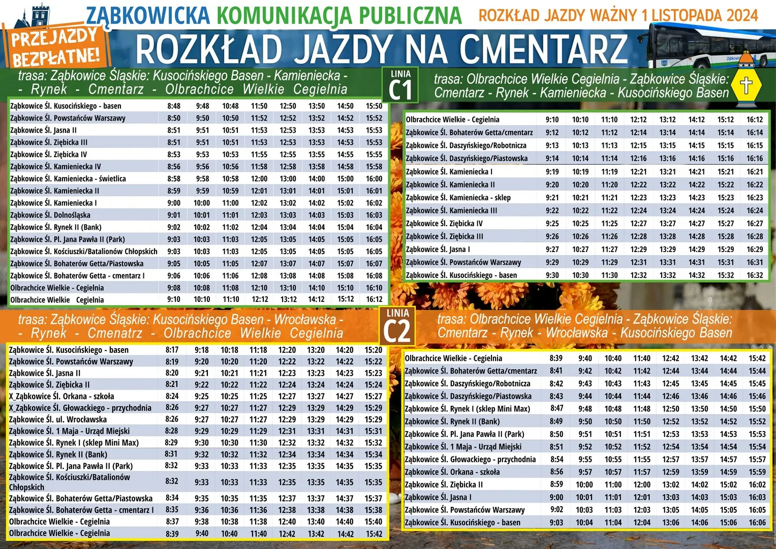 Bezpłatne przejazdy Ząbkowicką Komunikacją Publiczną na cmentarz w dniu 1 listopada 2024 r. - sprawdź rozkład jazdy